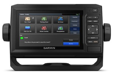 Connectivité Wi-Fi® intégrée pour le couplage avec l' application mobile gratuite et complète pour l'accès à la fonction OneChart™, aux Smart Notifications1, aux mises à jour logicielles, aux données de la communauté Garmin QuickDraw, etc.