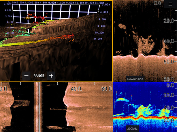 Transmet sur 60 fréquences différentes pour l'imagerie de sonar la plus proche de la réalité et, tout simplement, le meilleur ciblage des poissons – de manière interactive !