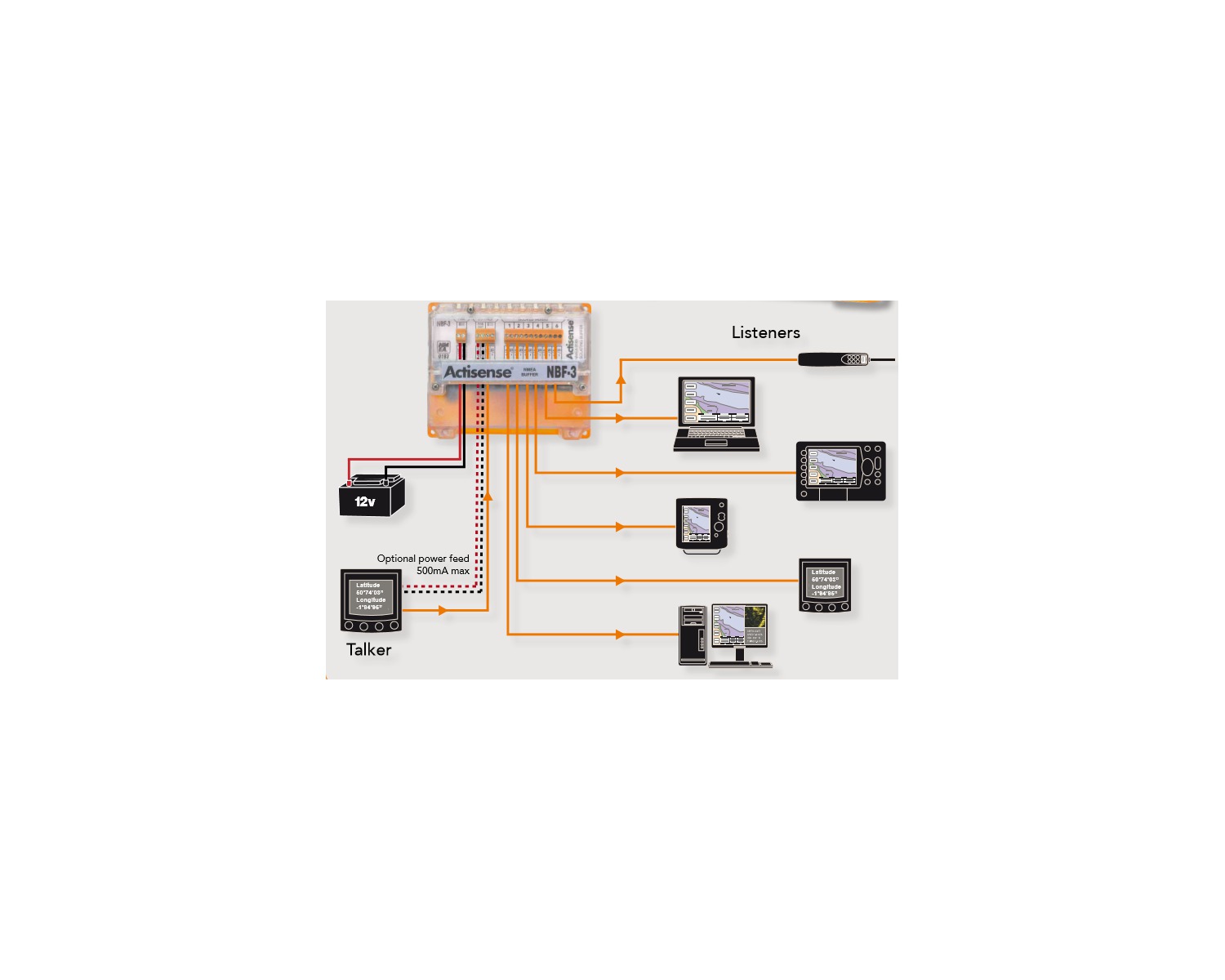 Cette interface permet de mettre en relation plusieurs appareils répondant à la norme NMEA 0183, elle bénéficie d'une isolation galvanique, d'une protection contre les courts-circuits et les inversions de polarité en entrée.