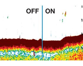L’autre avantage SCX-20 concerne directement la qualité de l’écran du sondeur. Toujours dans des conditions de mer agitée et sans compas satellitaire, le fond sur l’écran du sondeur s’affiche avec de légères hachures.