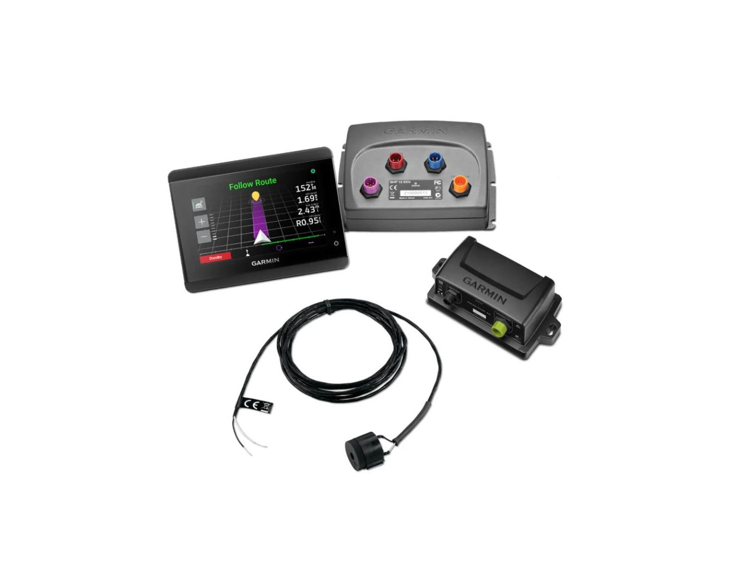 Choisissez entre les unités de puissance de classe A, B compact ou B pour votre système de direction (vendus séparément). Toutes les boîtes de commande Garmin incluent un capteur d'activation de barre.