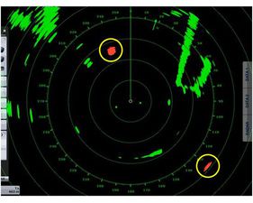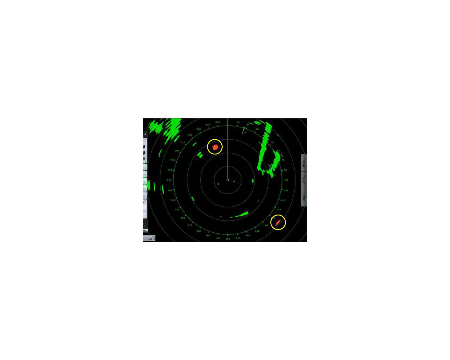 Le Fast Target TrackingTM remplace l’ARPA. Ce procédé vous apporte une sécurité supplémentaire, il va sélectionner automatiquement les cibles autour de vous dans toutes les directions (jusqu'à 100 cibles dans un rayon de 3MN) et afficher un vecteur Vitesse et Cap sur chaque cible. En couleur rouge les cibles avec un risque de collision, en couleur verte, les autres. La couleur bleue quant à elle, montre la trace des navires (Echo trail ON) ainsi que les zones de pluie. Il est possible d’activer une alarme de risque de collision (TCPA).
