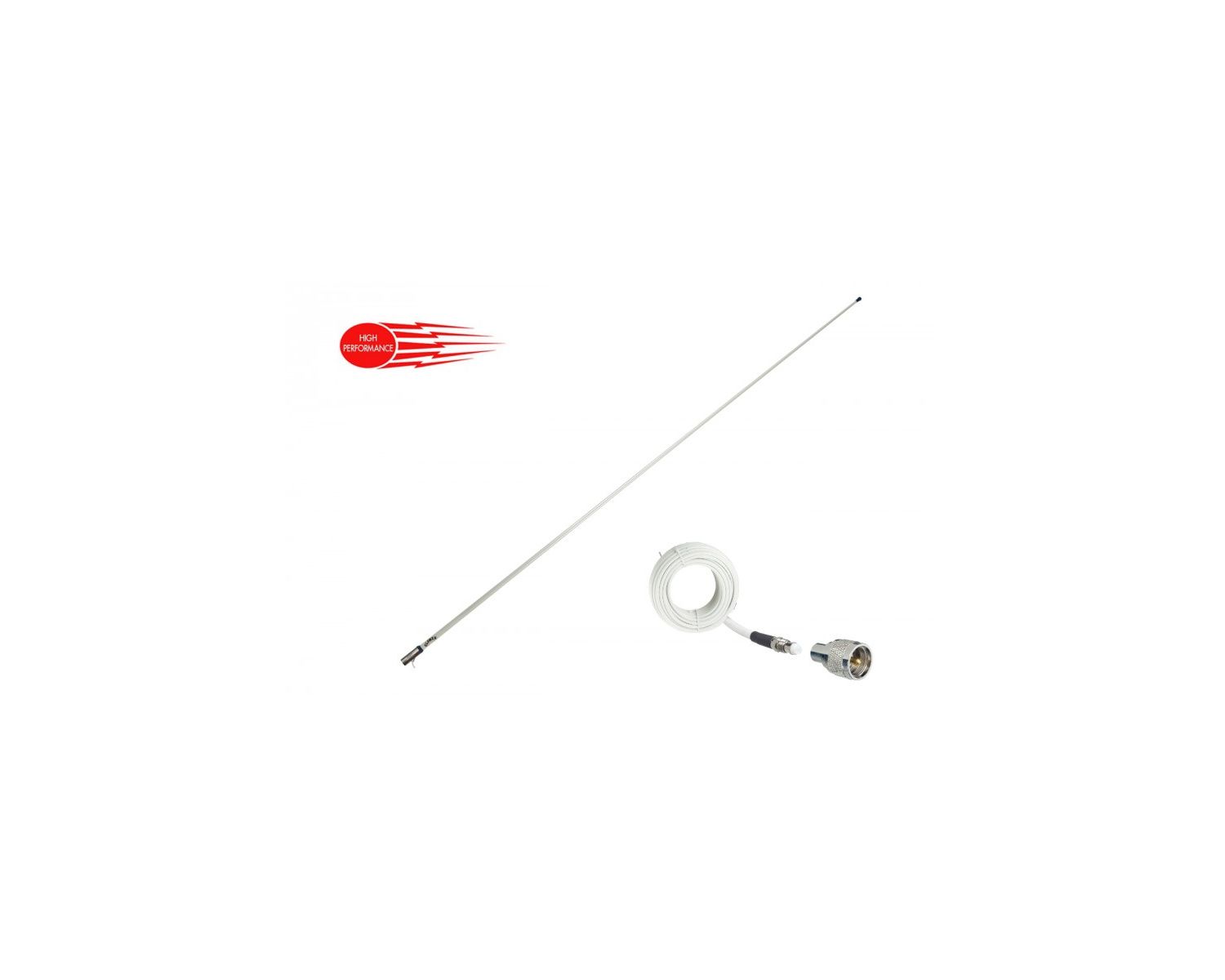 2,4m Antenne VHF à haute performance avec embase en acier inox, passe-fil intégrée en acier inox, câble coaxial de 7,6m avec connecteur FME pré-câblé et adaptateur PL-259.