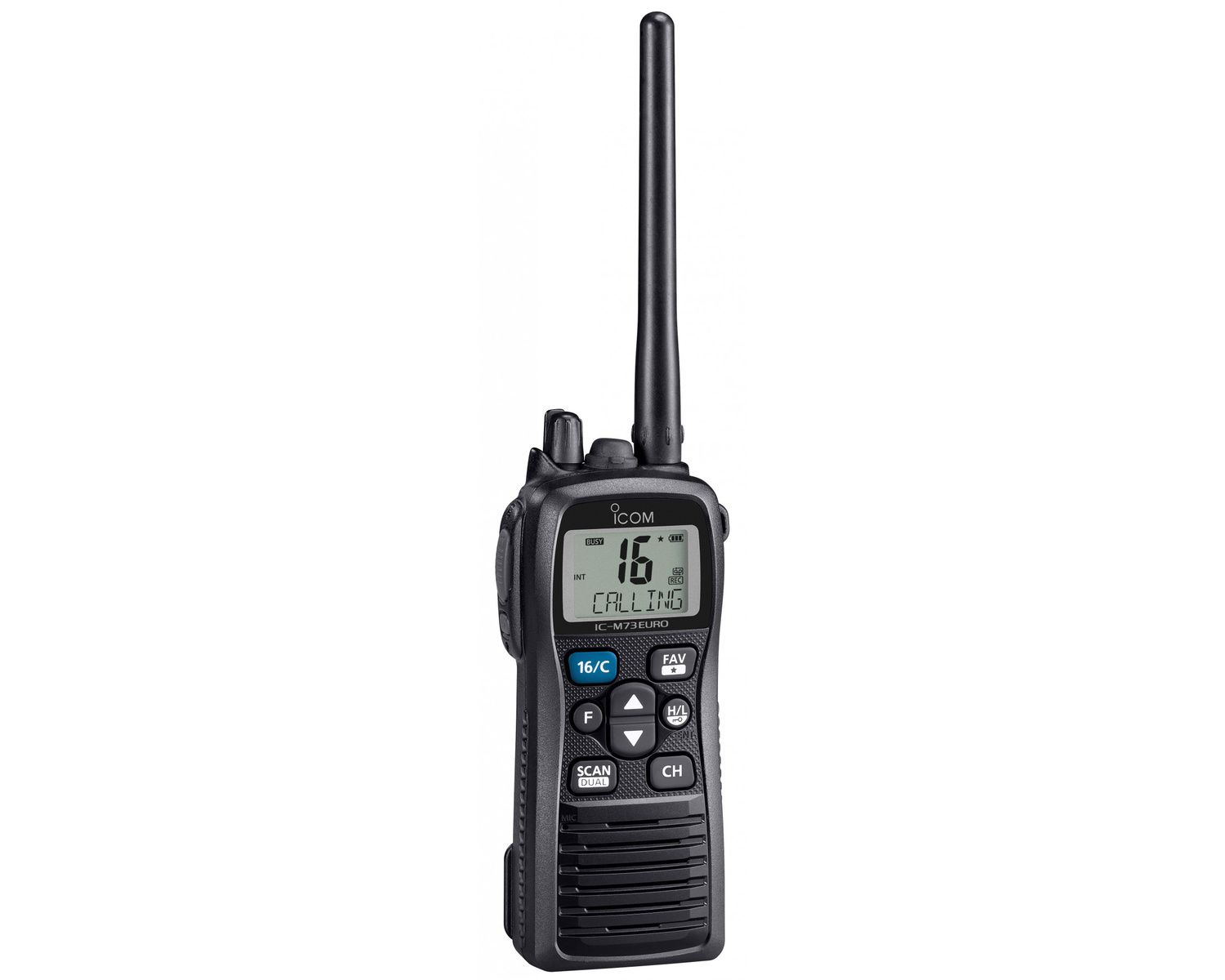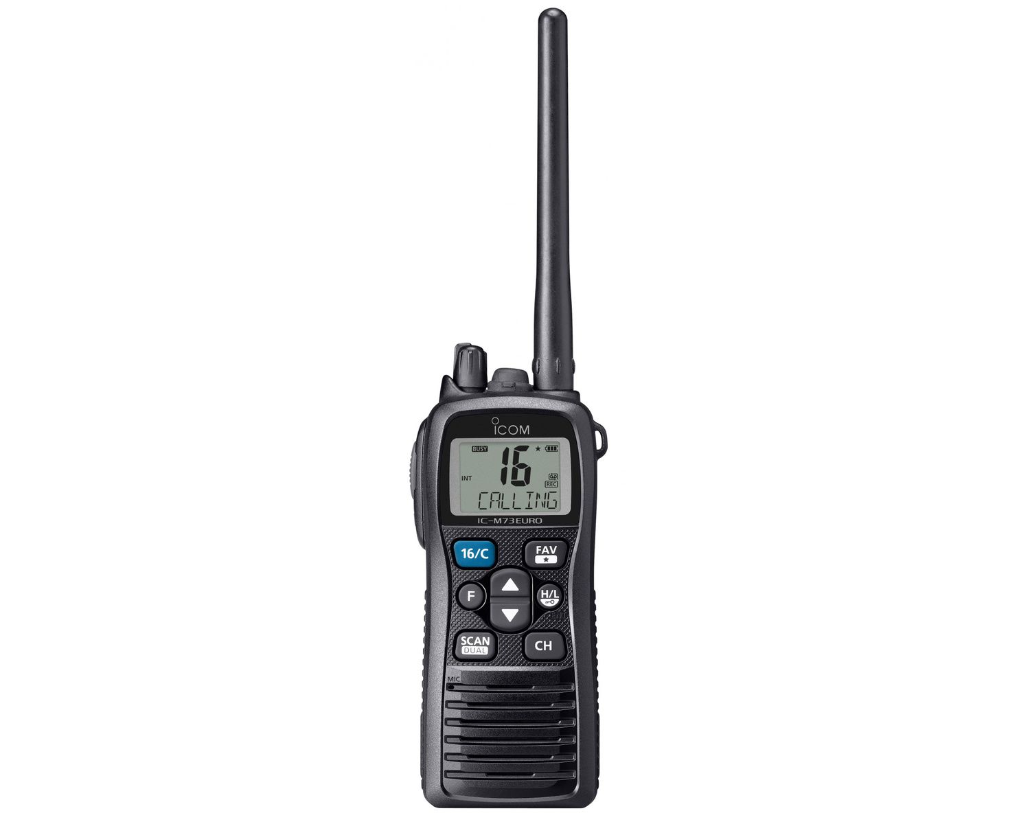 Bien que très compacte, l'IC-M73EURO délivre une puissance d'émission de 6 W pour une grande autonomie ; 15 à 18 h en condition normale d'utilisation avec la batterie Lithium-Ion de grande capacité 2 150 mAh fournie d'origine.