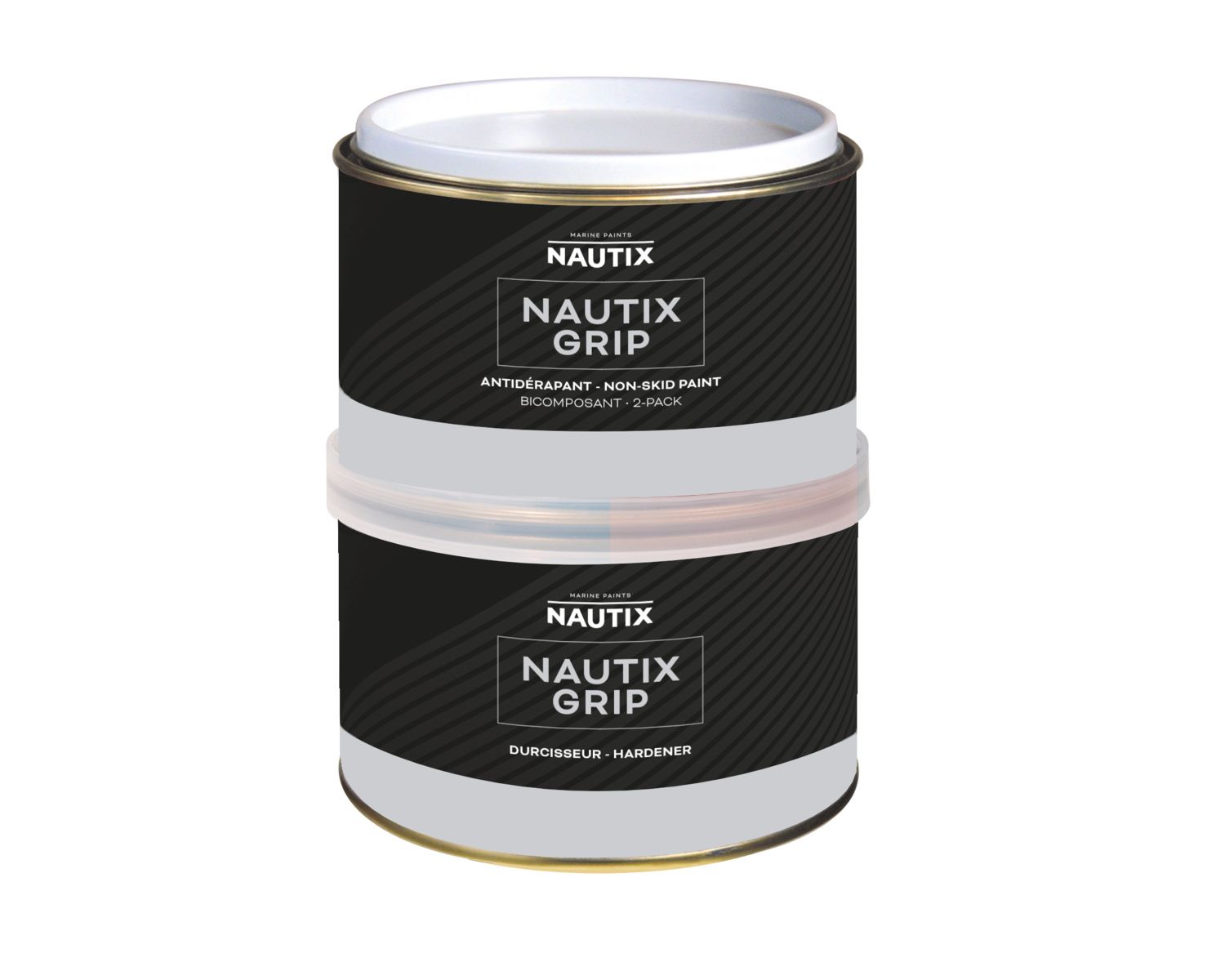NAUTIX GRIP est une peinture translucide antidérapante formulée pour assurer une très bonne accroche sous les pieds, idéale pour les surfaces extrêmement sollicitées comme le pont.