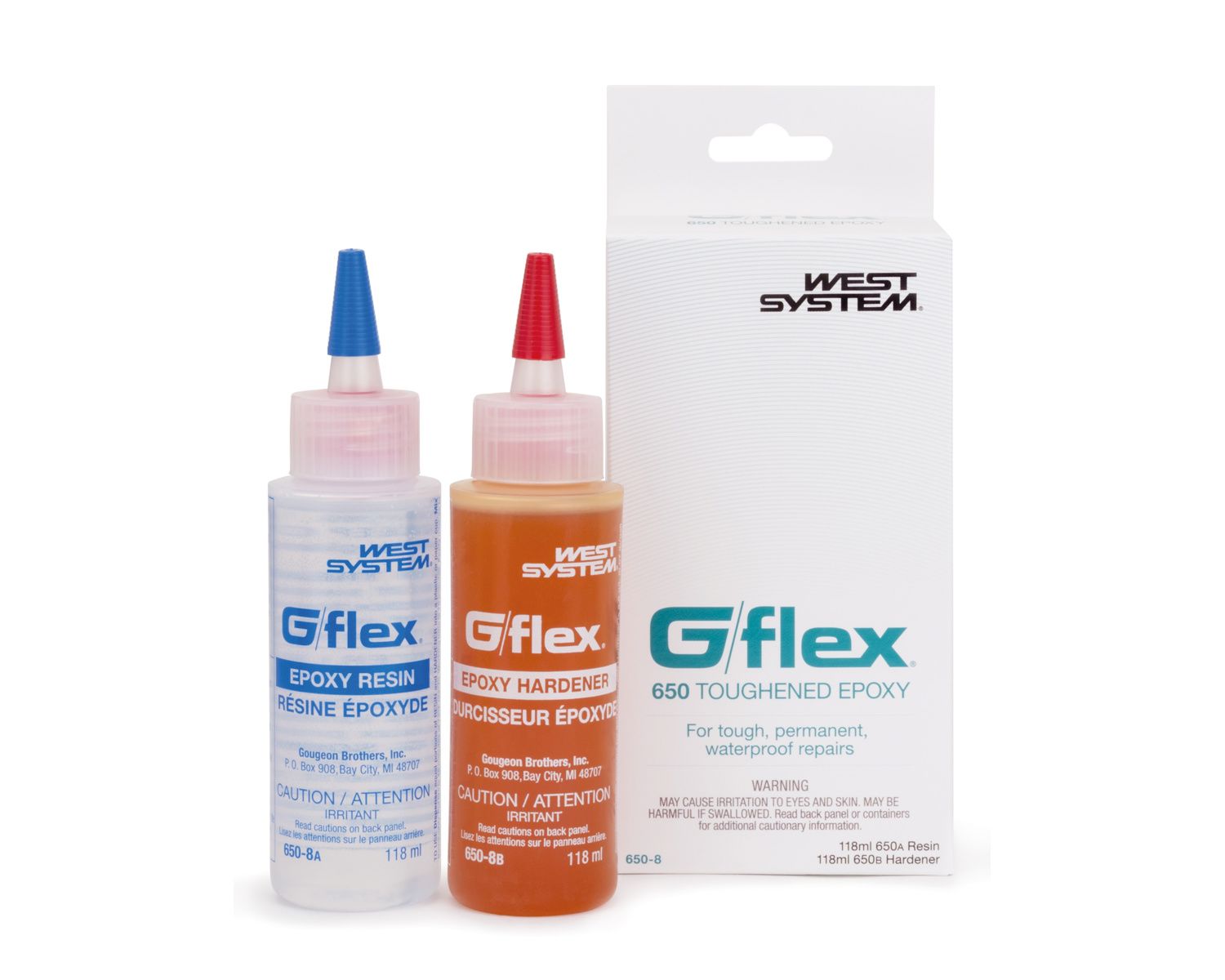 La colle époxy G/Flex 650 est une époxy liquide, polyvalent et durci, destiné à la liaison imperméable permanente. Plus flexible que les époxy et les polyester standards mais plus rigide que les mastics.