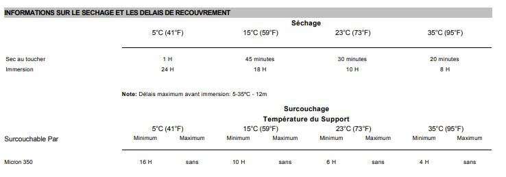 Au Pistolet (Applicateurs professionnels uniquement) Appliquer 1 couches de 120 microns secs pour 12 mois (épaisseur sèche totale de 120 microns) Appliquer 2 couches de 90 microns secs pour 24 mois(épaisseur sèche totale de 180 microns)