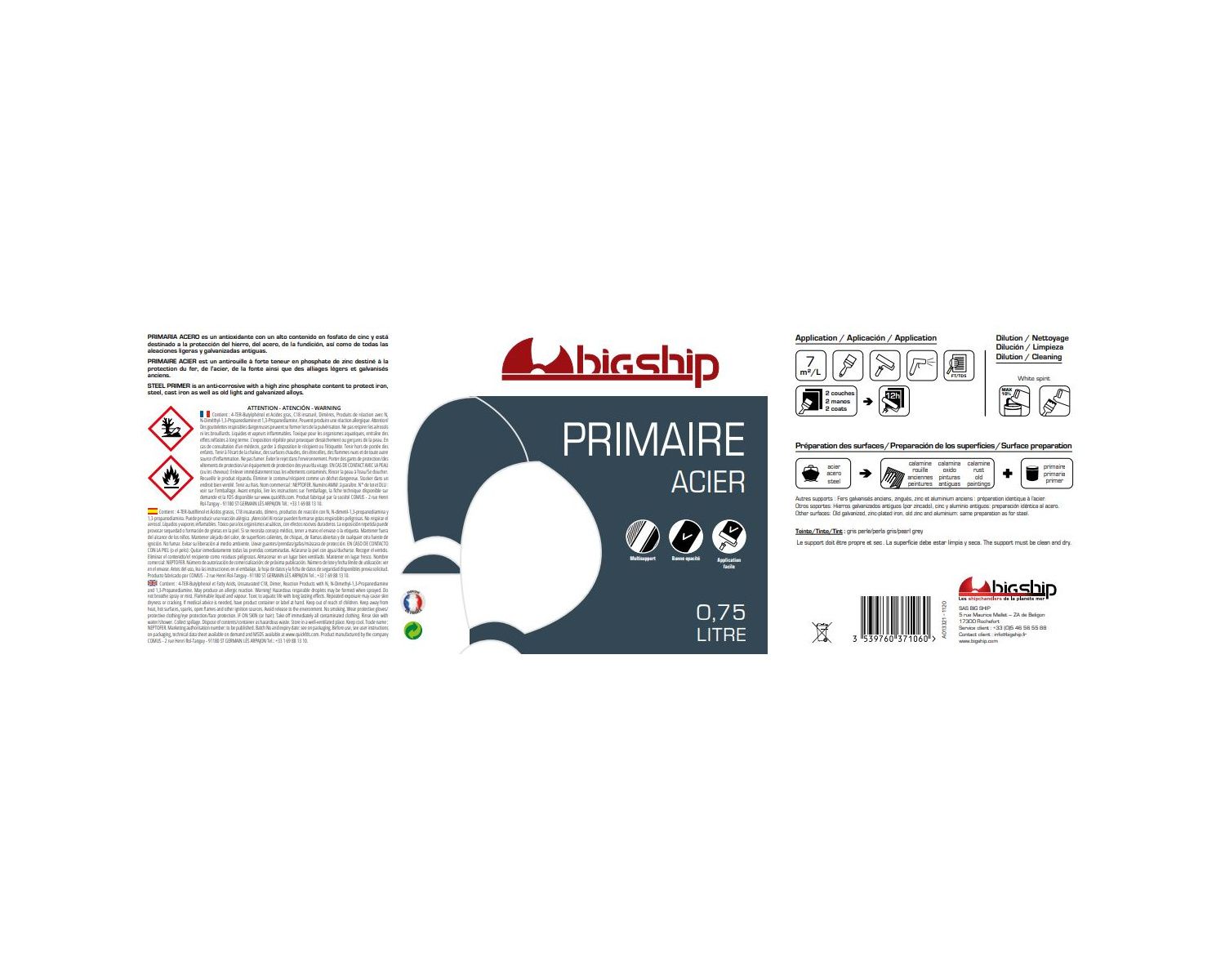 PRIMAIRE ACIER est un antirouille à forte teneur en phosphate de zinc destiné à la protection du fer, de l’acier, de la fonte ainsi que des alliages légers et galvanisés anciens.