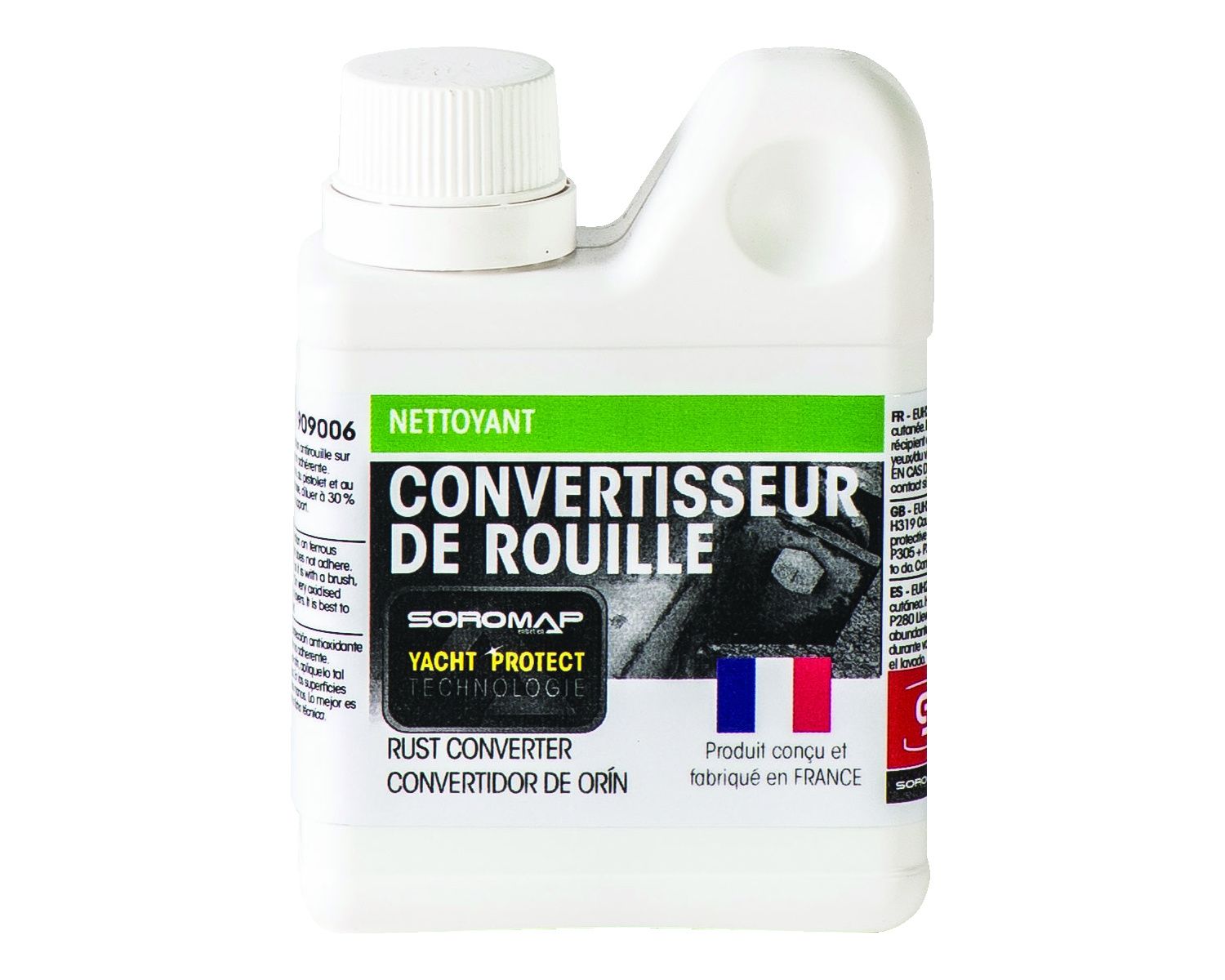 Le CONVERTISSEUR DE ROUILLE est un produit qui permet tout à la fois de traiter et de protéger contre la corrosion, les métaux ferreux oxydés sans avoir à les décaper préalablement. Protection complète contre la corrosion le CONVERTISSEUR DE ROUILLE de par son effet « décoratif » (brillant noir intense) peut rester en finition définitive à l’intérieur et plusieurs mois à l’extérieur avant d’être recouvert par une laque de finition.