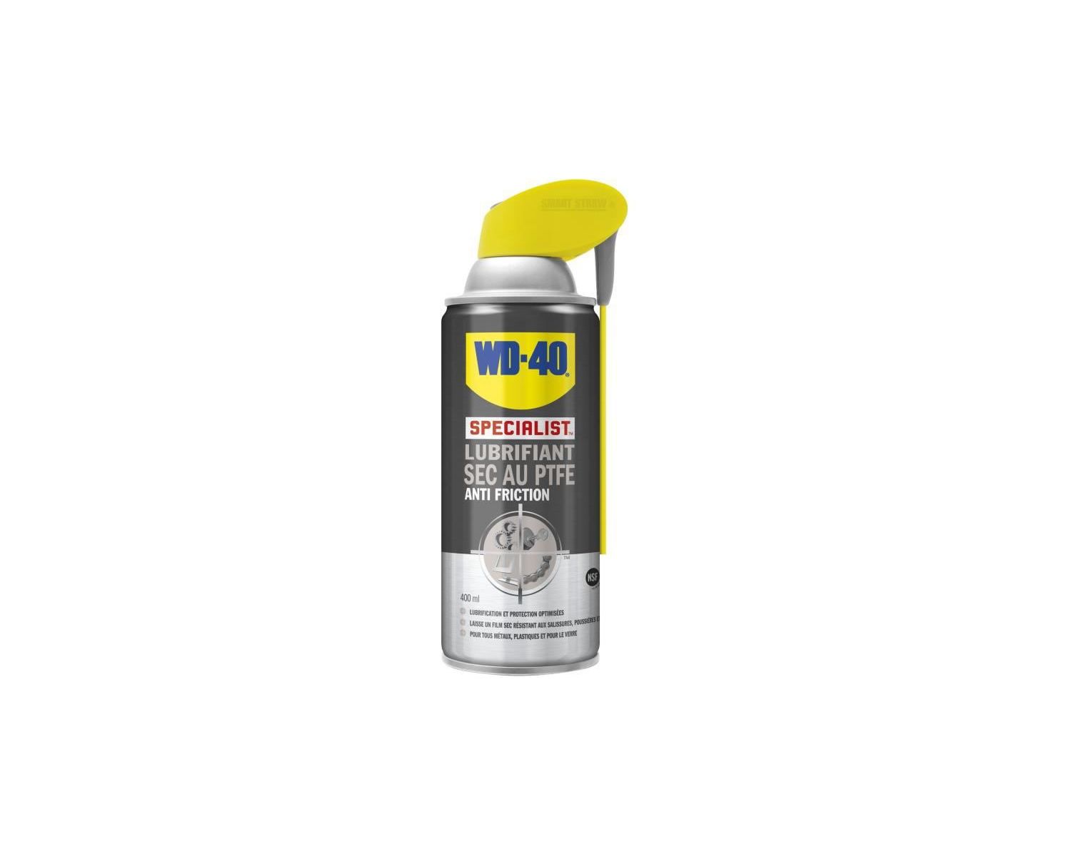 Le Lubrifiant Sec au PTFE WD-40 contient du Poly Tetra Fluor Ethylène qui, en laissant un film sec sur le support, permet une lubrification améliorée sans attirer les poussières, salissures ou huiles.