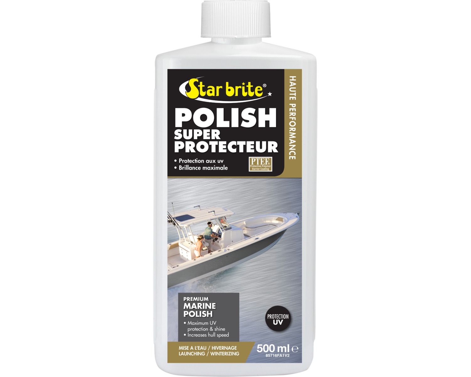 Marine prenium polish super protection pour fibre de verre, métaux et surfaces peintes . Dure jusqu'à 6 fois plus longtemps que les autres cires pour bateaux. Ecran anti-UV aidant à ralentir la décoloration et l'oxydation.