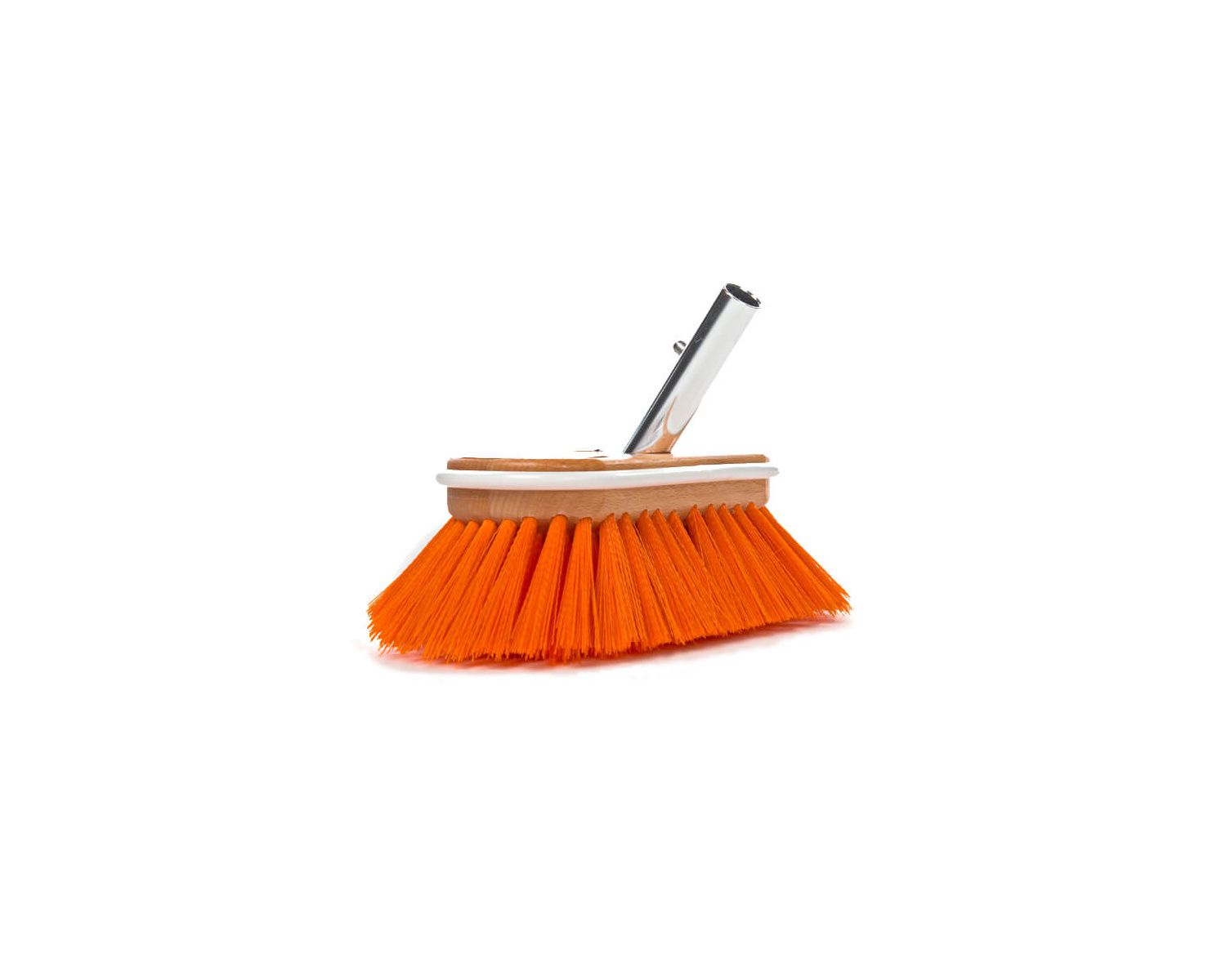 Fait à partir d’un bloc de bois dur verni avec des poils de brosse coudés pour atteindre les endroits difficiles d’accès. Le connecteur anodisé brillant est équipé d’un bouton à ressort en acier inoxydable pour un montage rapide et facile de la brosse sur un manche Deck Mate.