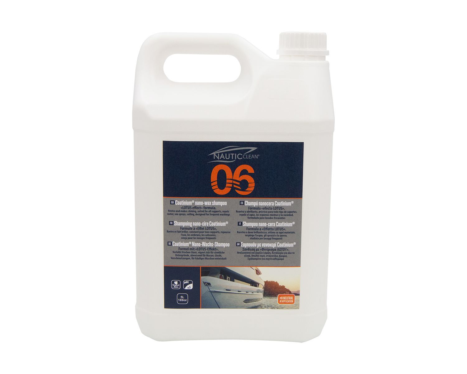 Conçu pour les lavages fréquents des bateaux, le shampoing nano-cire Coatinium 06 de Nautic Clean n’altère pas le gelcoat, ni la peinture; au contraire, il les protège et les ravive.