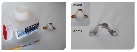 Appliquer généreusement à la brosse ou au pinceau, laisser agir 5 à 15 minutes selon le degré de corrosion de la pièce. Rincer à l’eau claire et essuyer avec un chiffon doux. L’utilisation d’équipements de protection est fortement recommandée.