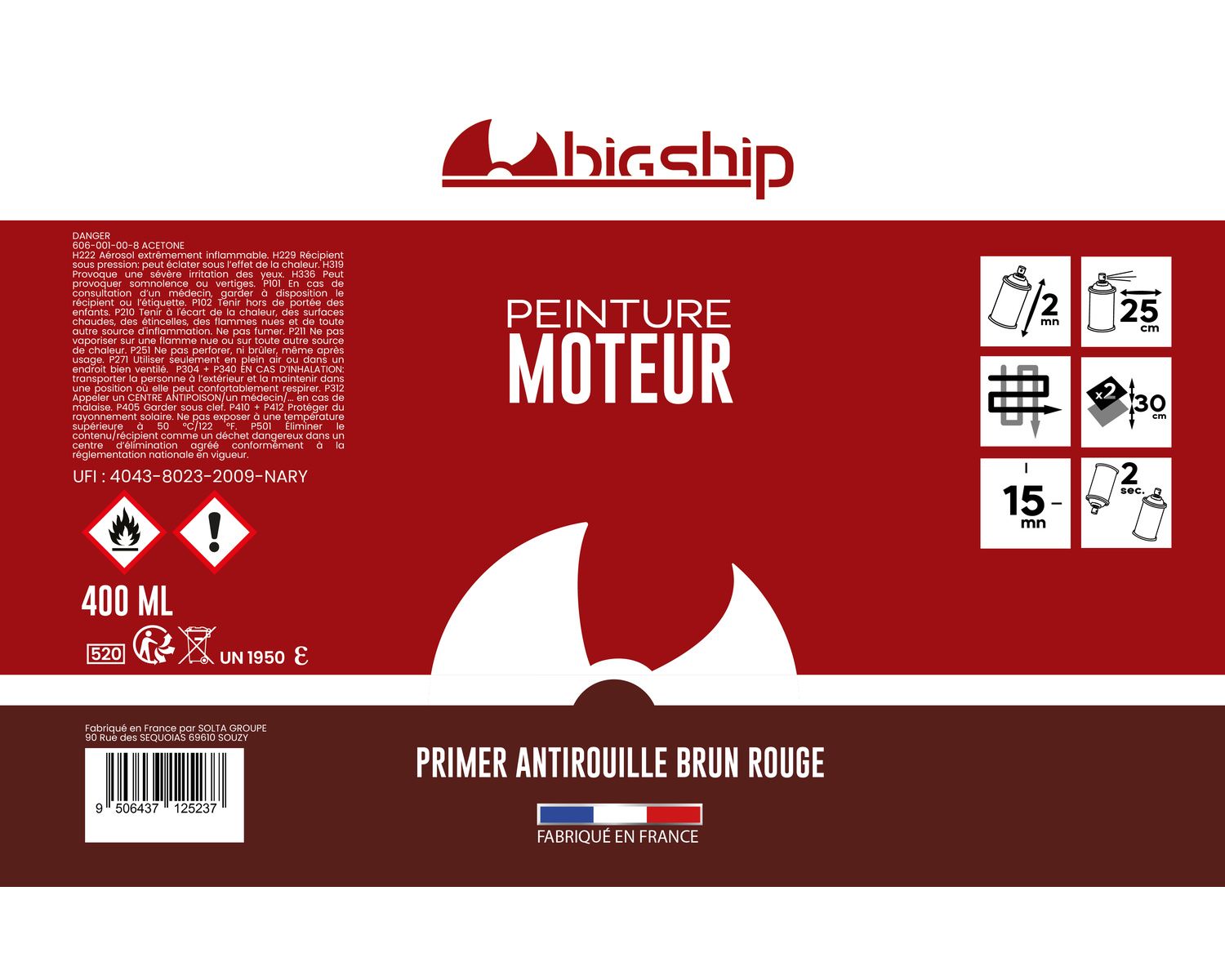 Bombe de peinture noir mat 400 mlBigShip Bombe de peinture noir mat 400 ml