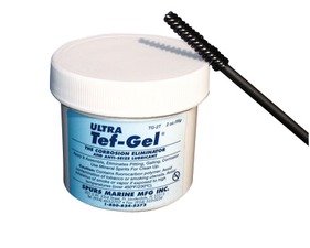 TEF-GEL élimine la corrosion qui se développe entre 2 métaux différents en contact en empêchant les électrolytes de pénétrer l'interface des surfaces métalliques. Il empêche par exemple la soudure par corrosion de la visserie inox qui fixe l'accastillage sur les mats et bômes. Tef-Gel s'applique en couche mince sur les 2 surfaces à mettre en contact au pinceau fin. Il ne sèche pas, ne gèle pas. N'isole pas électriquement. Se nettoie au White-spirit.