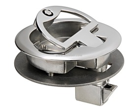 Fermeture à déclenchement avec poignée à ressort. Entièrement en inox AISI 316 poli miroir.