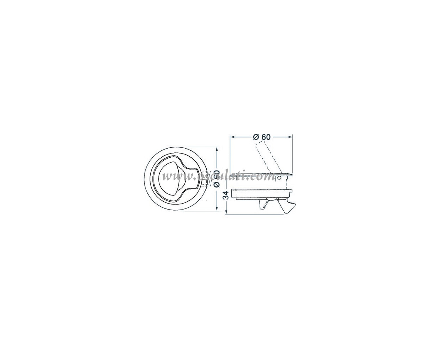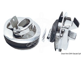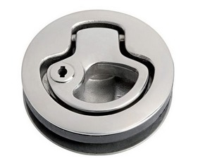 Lève-plancher et fermeture sabords avec poignée à ressort et serrure à clé.