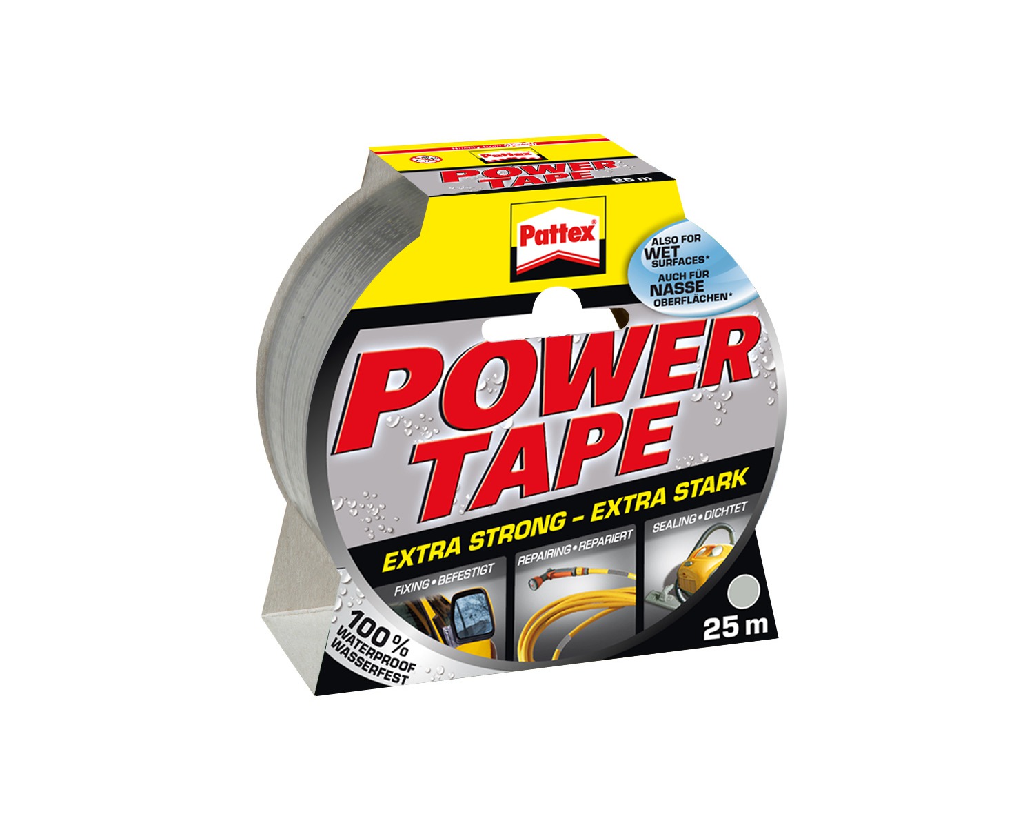 Nul besoin de ciseaux, Power Tape de Pattex se découpe à la main ! Pattex Power Tape est l’adhésif aux 1001 usages, à l’intérieur et à l’extérieur. Le rouleau adhésif Power Tape est également un adhésif extra fort conçu pour résister à l’eau et aux intempéries. Les rouleaux adhésifs Power Tape existent en gris, noir, blanc, orange, vert et transparent.
