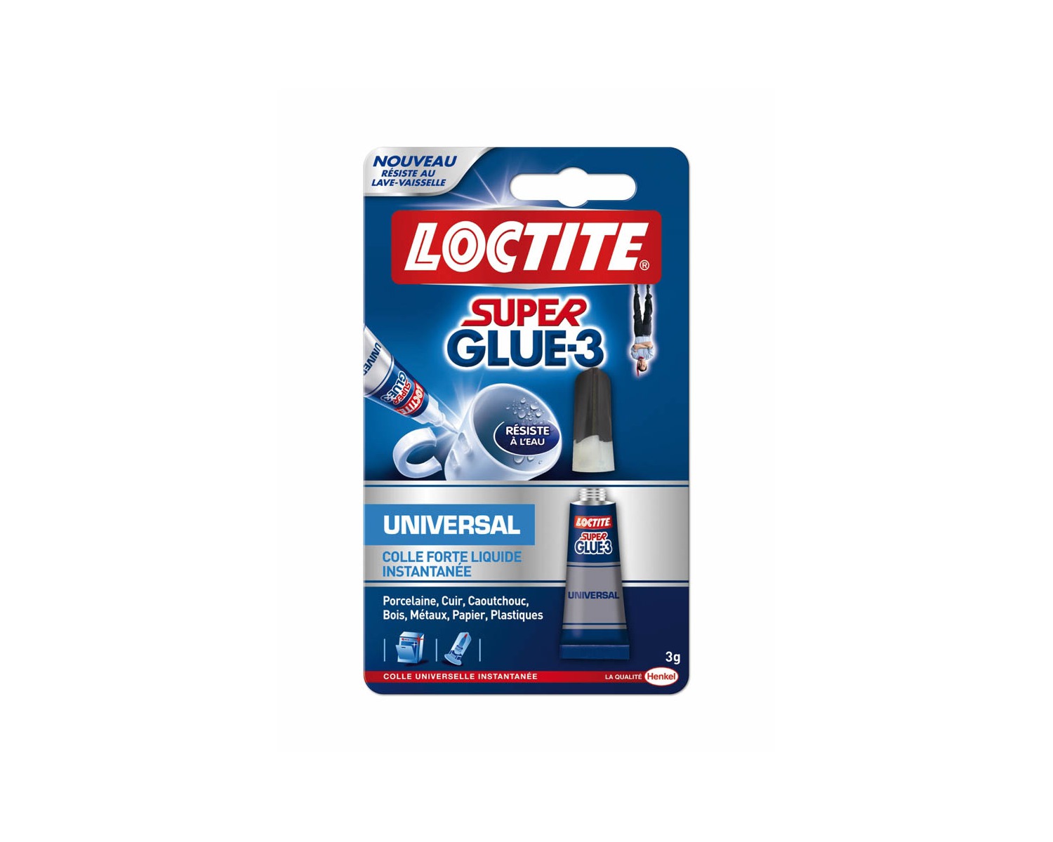 Colle puissante universelle instantanée pour coller en quelques secondes la majorité des matériaux. Grâce à sa formule liquide, Loctite Super Glue-3 s’étale facilement pour un collage en toute simplicité. Cette formule de colle résiste à l’eau et maintenant au lave-vaisselle.