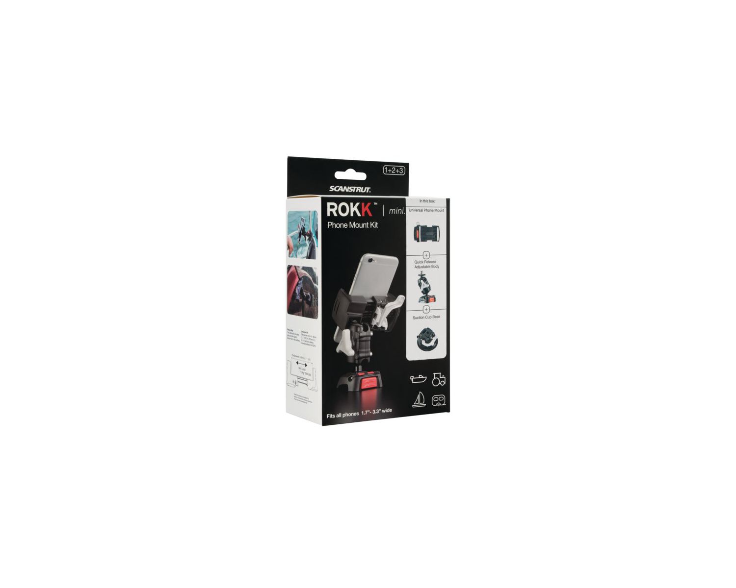 Les kits ROKK Mini sont composés d'un support universel pour tablettes ou téléphones, d'un pied articulé 360° ROKK Mini et d'un socle adaptateur.