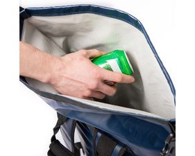 Gardez votre nourriture et vos boissons au frais pendant des heures grâce à cet élégant sac isotherme imperméable bleu nuit.