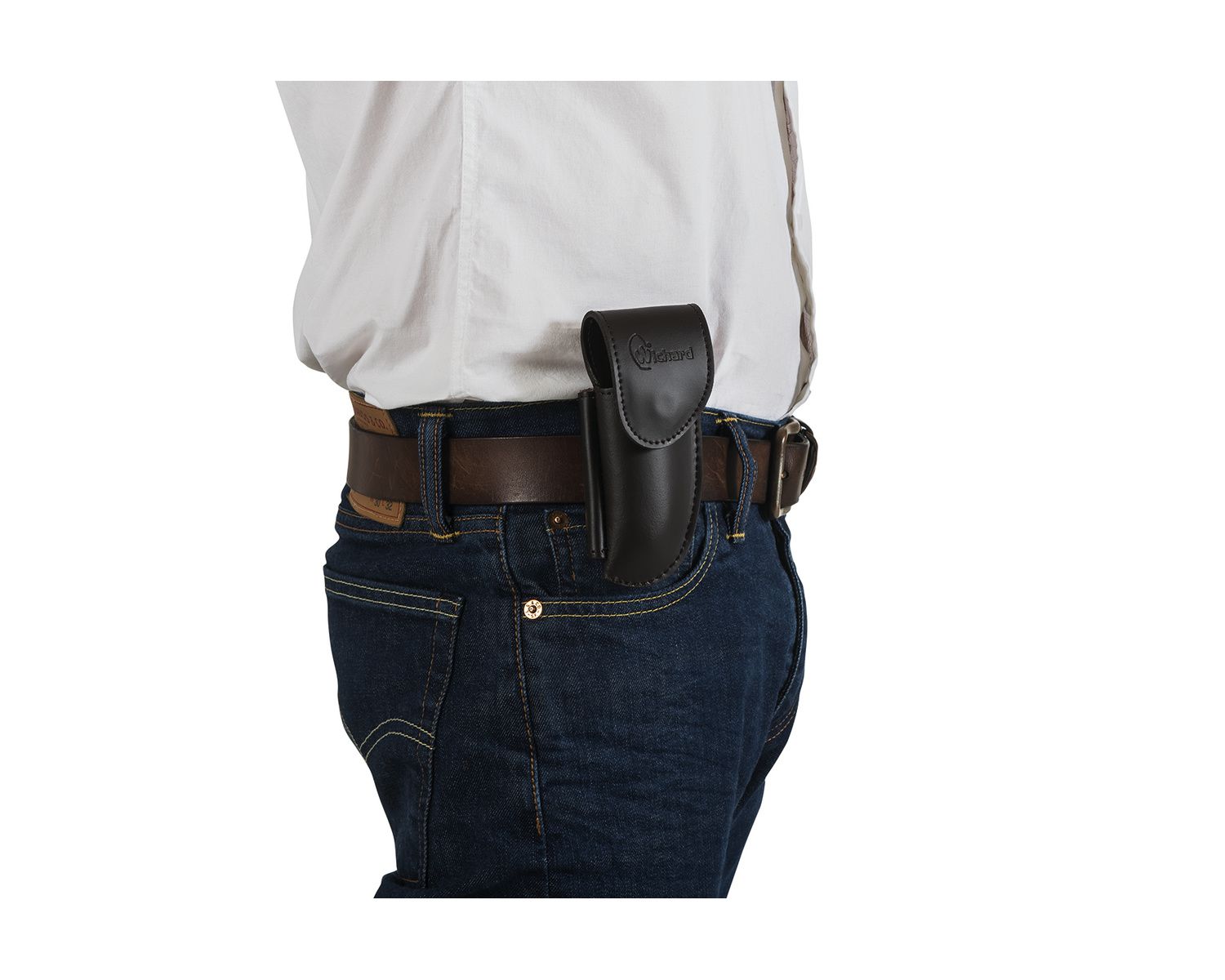 Leur passant permet un port horizontal ou vertical. Le bouton pression empêche les ouvertures accidentelles.