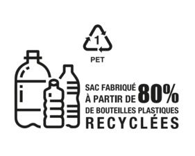 Sac fabriqué à partir de 80% de bouteilles plastiques recyclées.