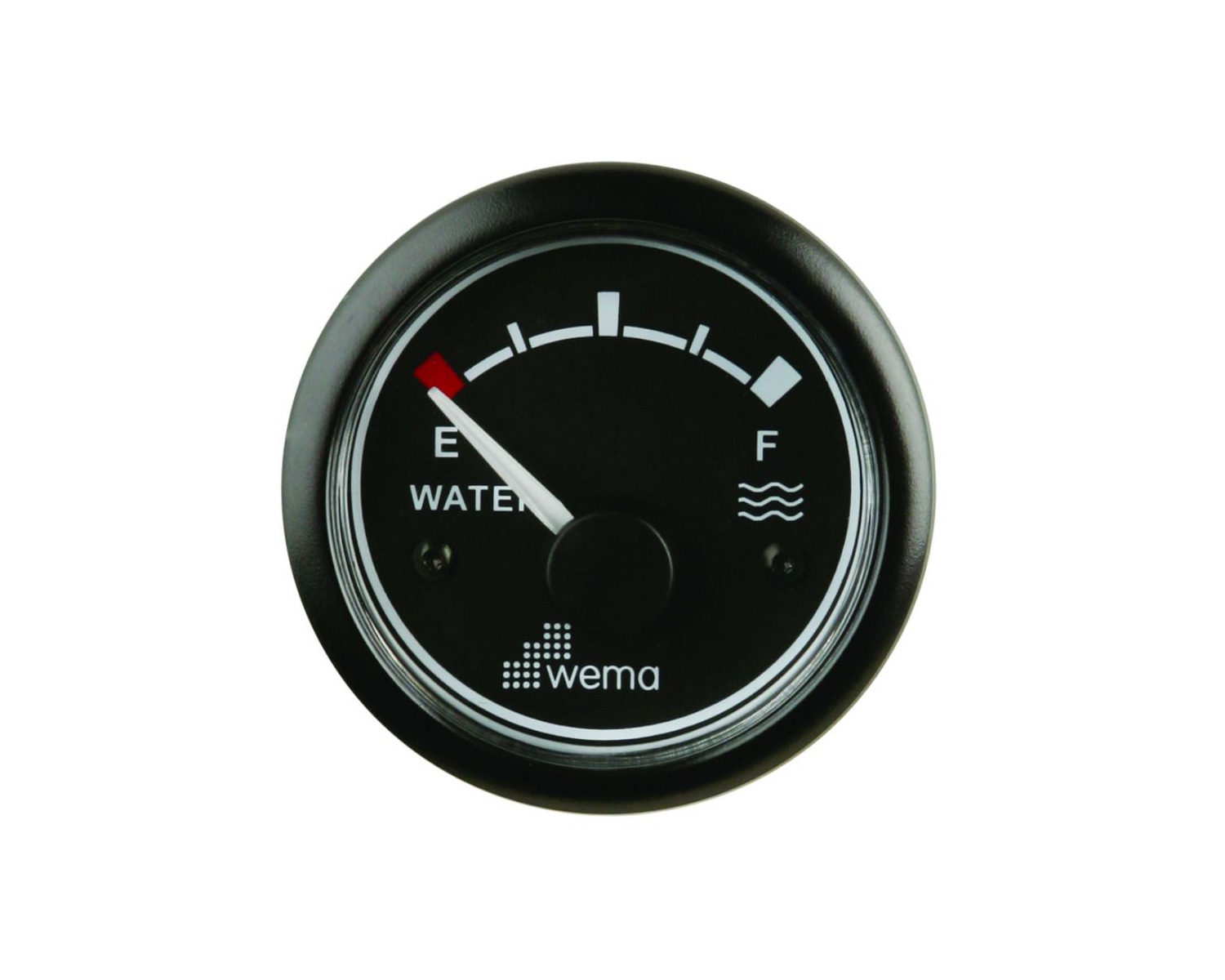 Jauge fabriquée spécialement pour la marine, insensible à la corrosion. Nécessite un capteur 0-180 ohms optionnel.