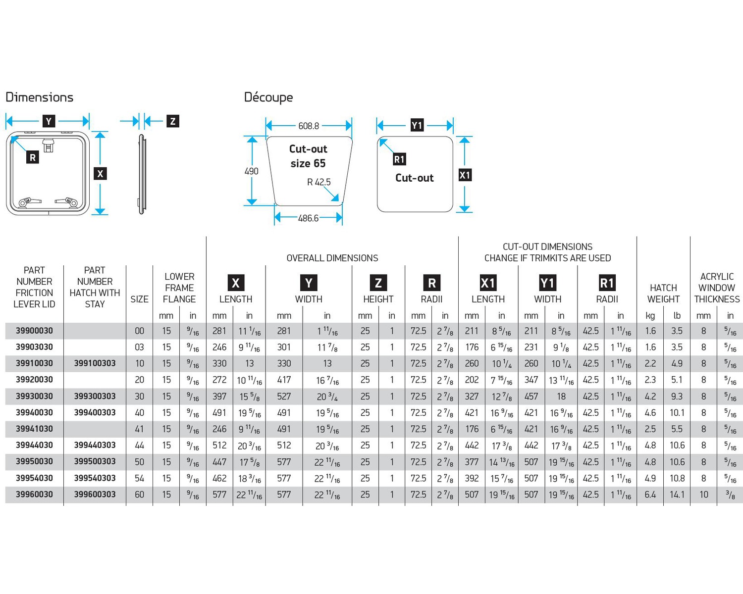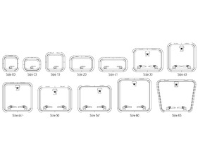 Ils sont équipés d'un bras de maintien en position ouverte, de poignées extérieur permettant d'ouvrir le panneau depuis le pont s'il n'est pas verrouillé de l'intérieur, d'un cadre en aluminium anodisé pour une meilleure résistance à la corrosion.