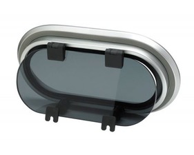 Cadre en aluminium anodisé et poli à la main. Panneau en acrylique "fumée" de 10mm d'épaisseur.
