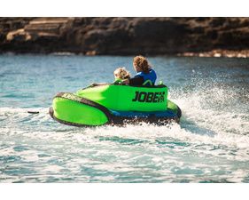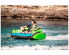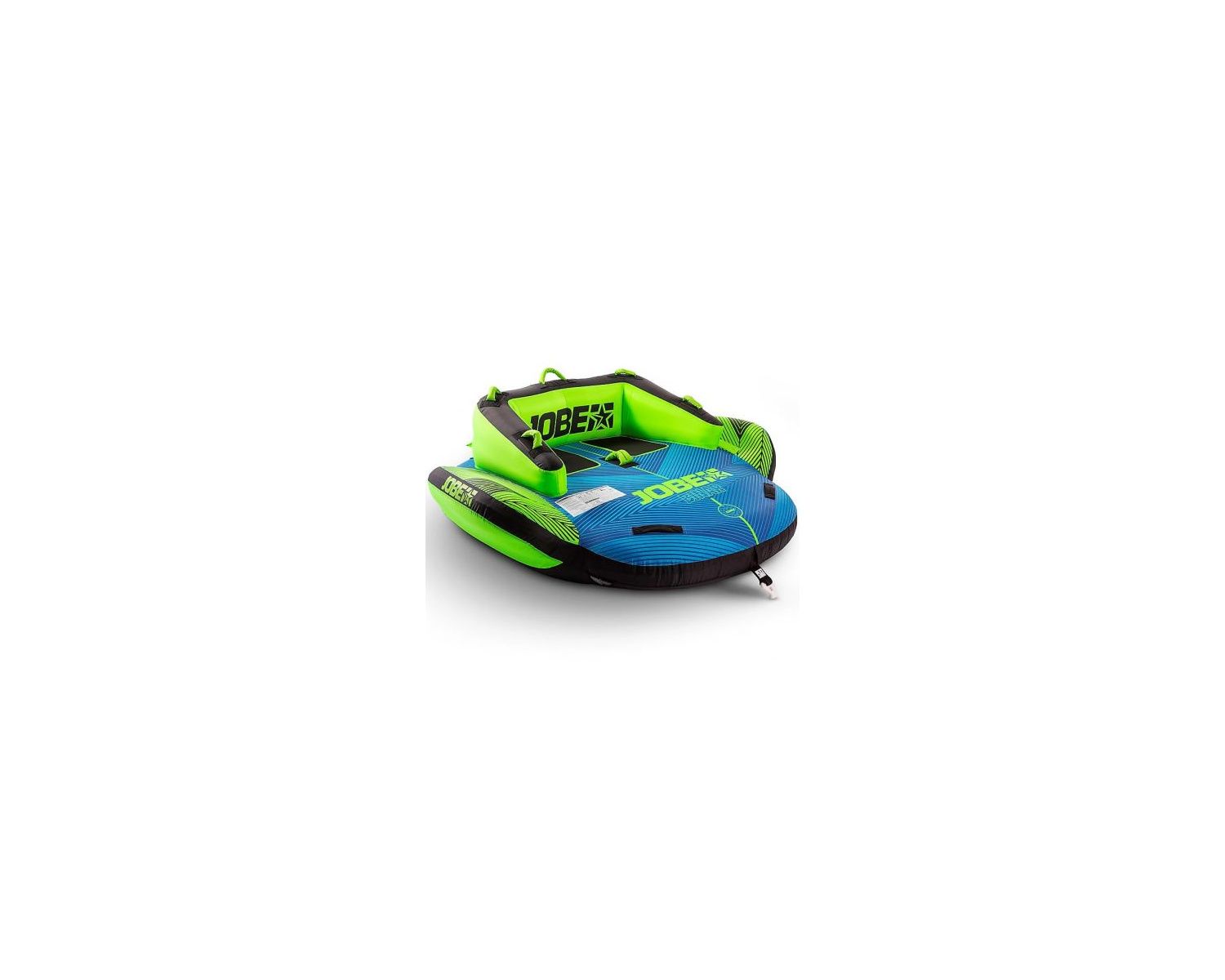 Cette bouée deux personnes comprend quatre chambres à air en PVC très résistant. Pour plus de confort, elle est recouverte d'une housse en nylon 840D avec des pads en néoprène sur les assises. Elle comprend dix poignées en mousse EVA avec néoprène pour les doigts. Pour plus de sensations, cette bouée peut être tractéer dans les deux sens.