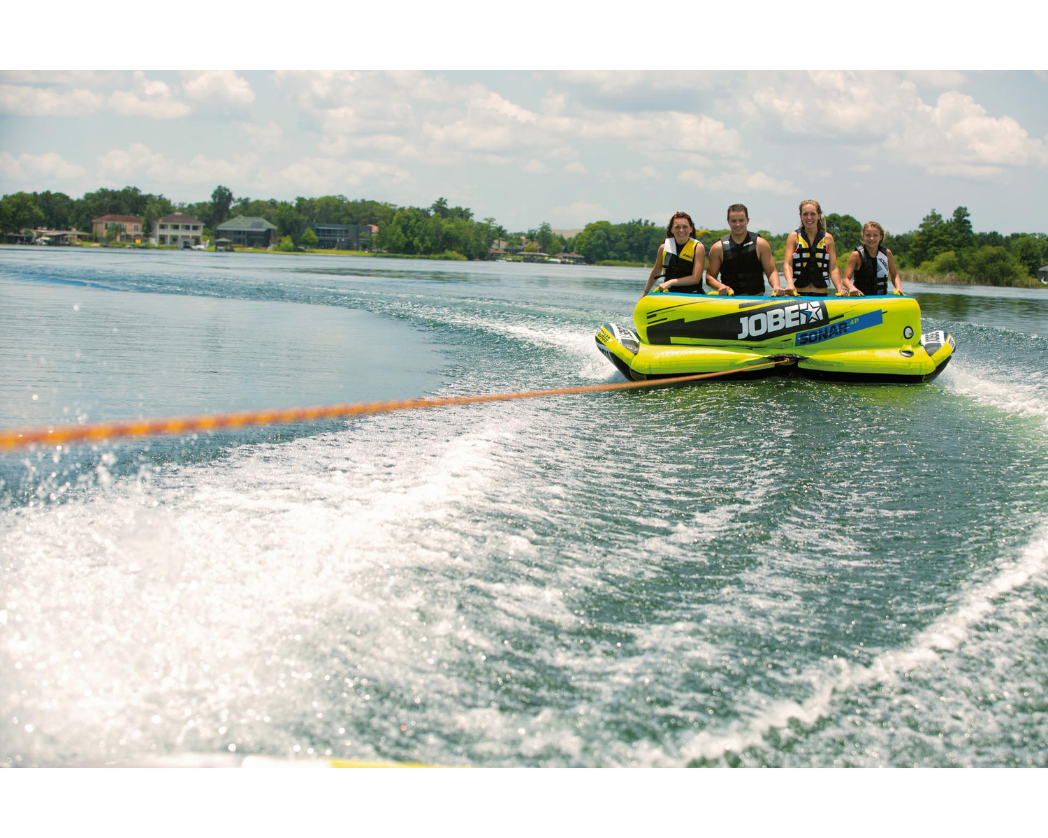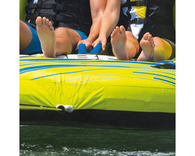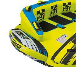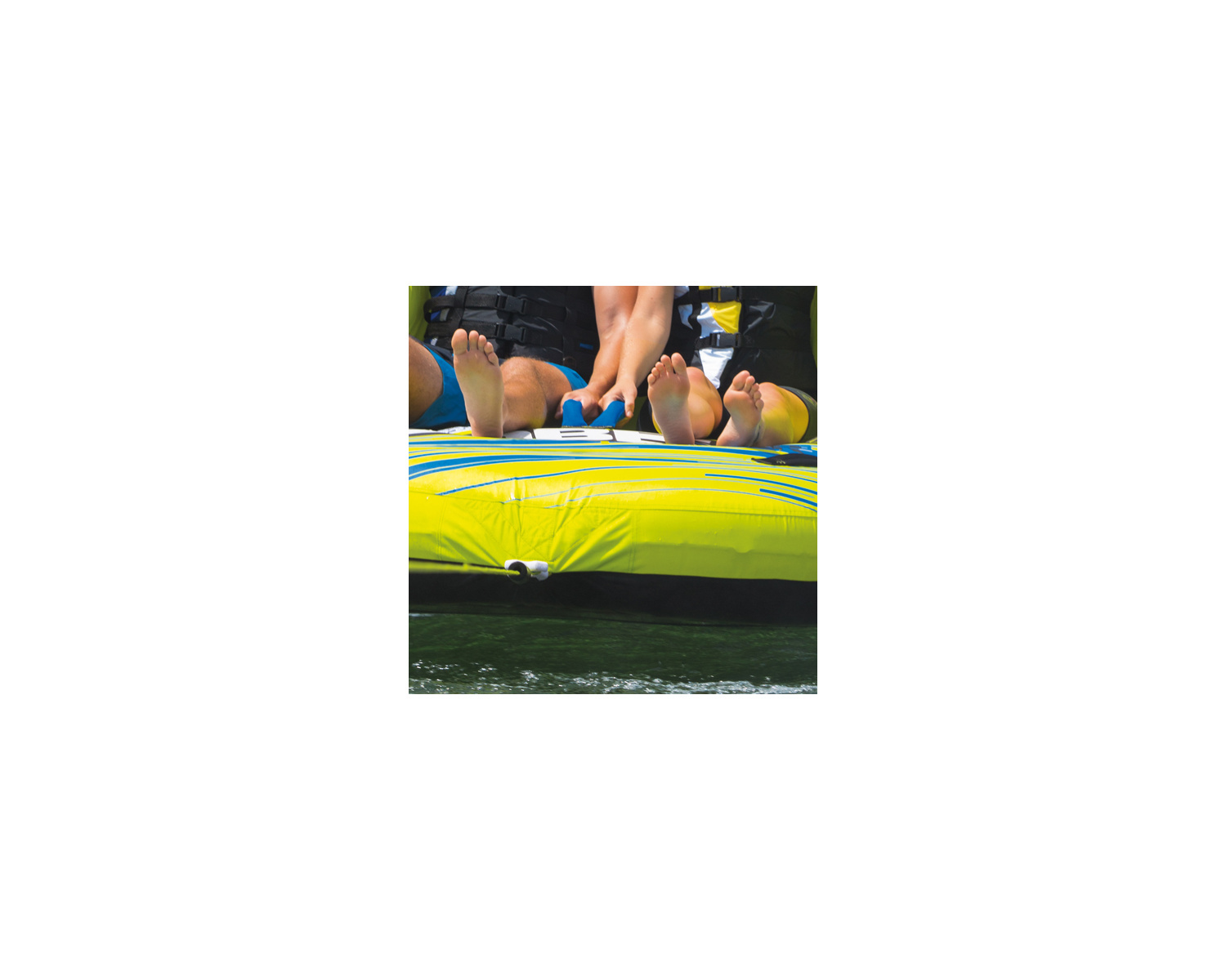 Cette bouée canapé permet de tracter jusqu'à quatre personnes. Elle comprend de nombreux pads et de nombreuses poignées pour plus de sécurité.