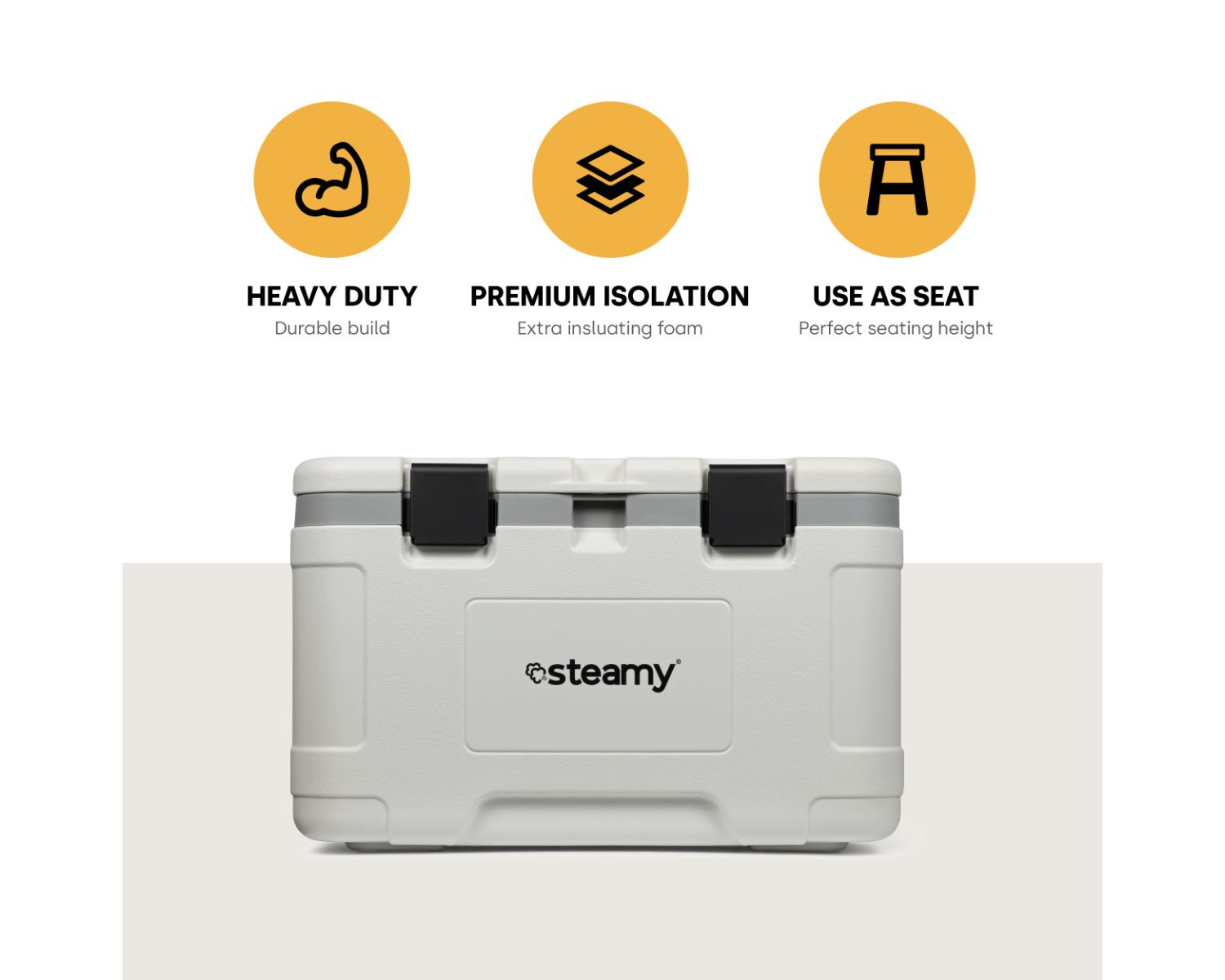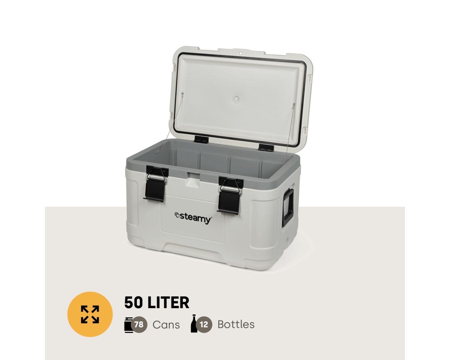 Ajoutez la Steamy Marine 50 à votre équipement et profitez d'une capacité de refroidissement inégalée lors de vos aventures maritimes. Cette glacière est un partenaire fiable pour toute navigation, avec l'assurance de la fraîcheur et de la durabilité où que vous naviguiez.