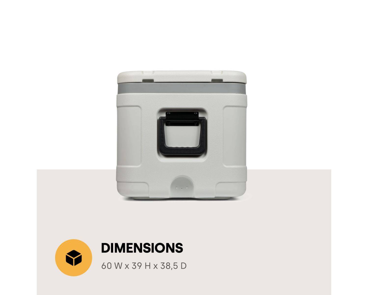 La glacière a une capacité de 50 litres, idéale pour refroidir et stocker de grandes quantités de boissons et d'aliments pendant les longues sorties en mer, les sorties de pêche et les aventures maritimes. La mousse isolante avancée de la glacière et du couvercle maintient le contenu à une température parfaite.