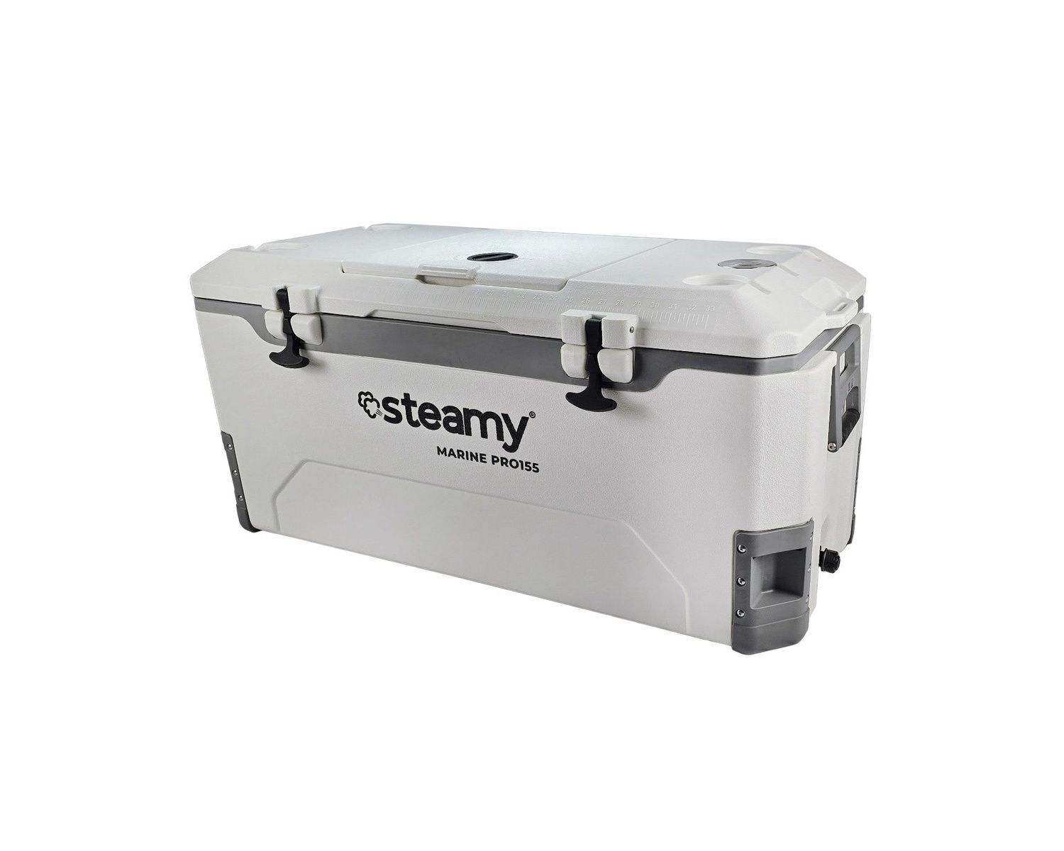 Le Steamy Marine Pro 155 a une capacité de 155 litres, soit plus que suffisant pour toutes vos activités. Avec son énorme capacité de stockage, il offre de la place pour toutes vos boissons, collations et bien plus encore, tandis que l'isolation de haute qualité garantit que tout reste à la bonne température.