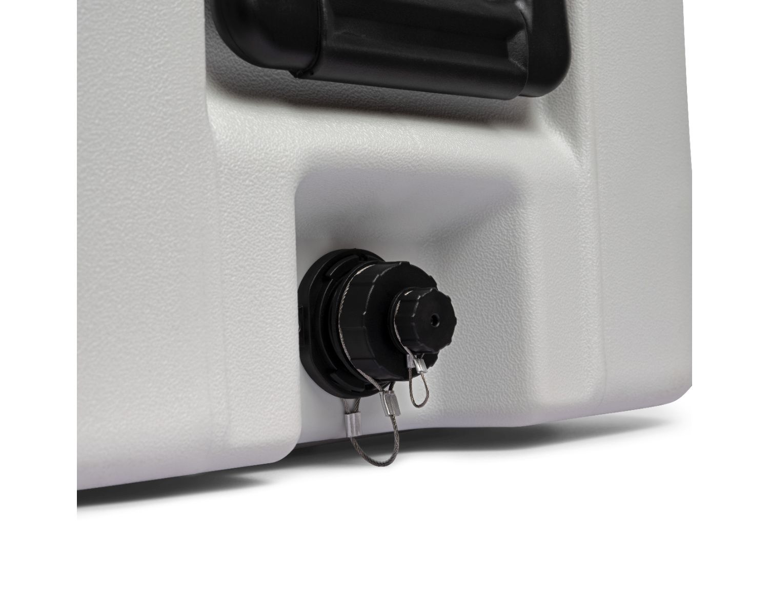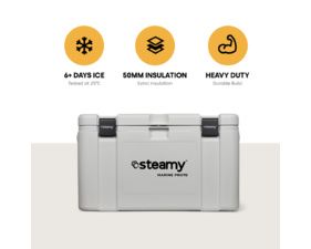 La Steamy Marine Pro 70 est équipée de points d'arrimage qui vous permettent de sécuriser la glacière pour qu'elle reste en place, même sur les mers agitées. Les fermetures et les poignées en acier inoxydable assurent non seulement la durabilité de la glacière, mais aussi son étanchéité pour protéger son contenu des intempéries. Les poignées robustes permettent de transporter la glacière sans effort, même lorsqu'elle est entièrement chargée.