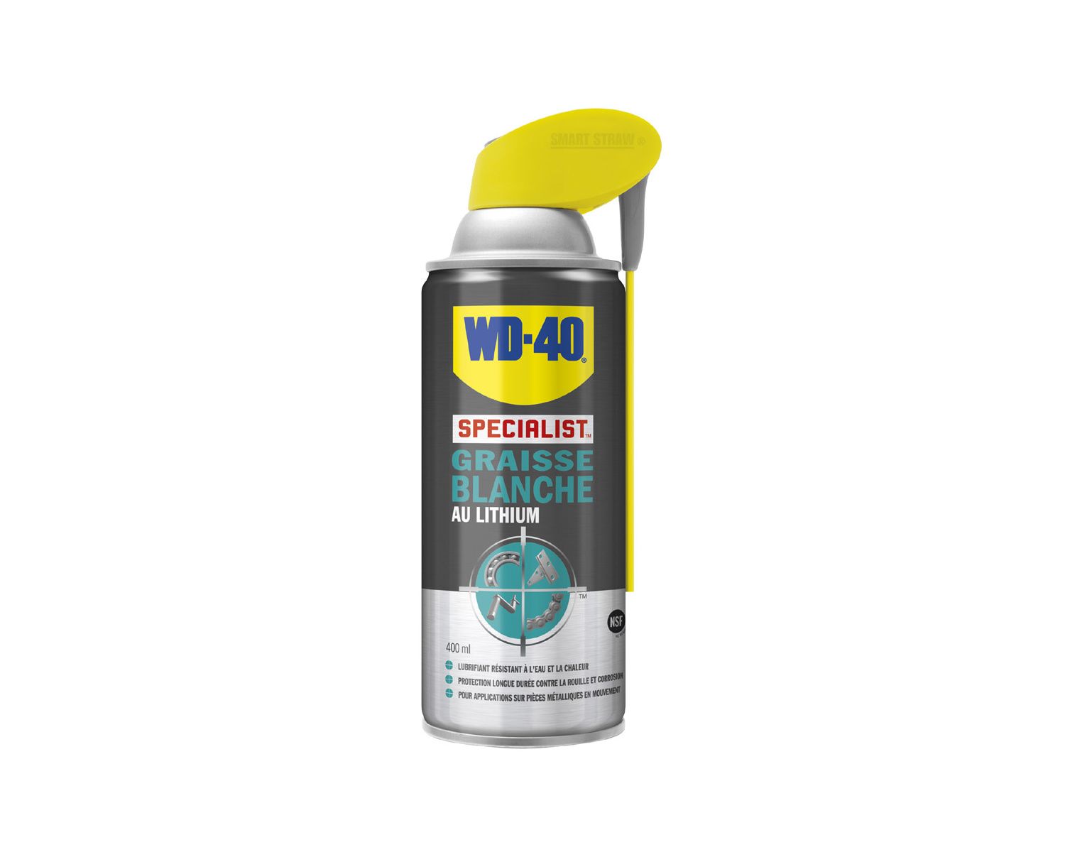 La Graisse Blanche au Lithium WD-40 Specialist bénéficie d’une formule épaisse procurant une lubrification résistant à l’eau et à la chaleur. Elle ne coule pas et reste adhérente sur le support. Dotée d’excellentes propriétés anti-usure, elle réduit les coefficients de friction et facilite le fonctionnement des pièces métalliques en mouvement. Utilisable sur des mécanismes supportant de fortes charges, en intérieur comme en extérieur, la Graisse Blanche au Lithium WD-40 Specialist résiste à des températures pouvant aller de -25°C à +130°C et sa formule est certifiée H2 par la NSF.