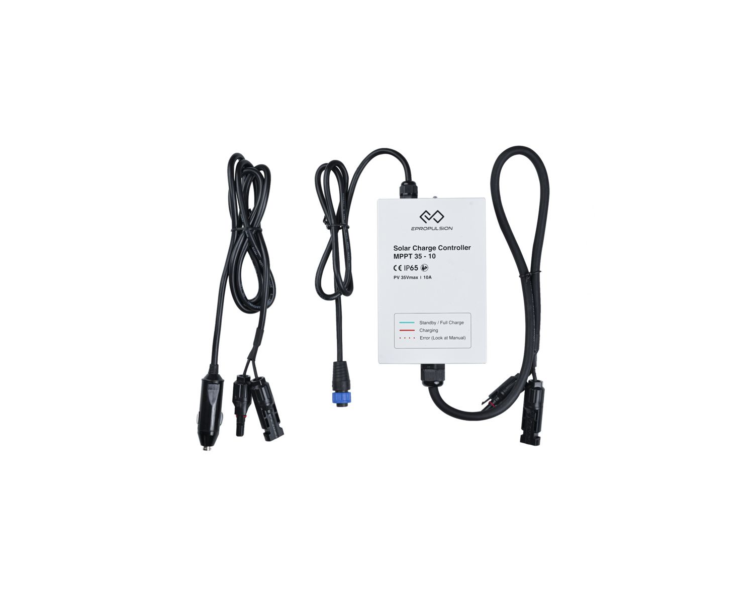 Équipé en entrée de connexions Plug & Play MC4, il est donc possible de connecter tous panneaux solaires d'une puissance inférieure à 180W ayant une tension de sortie maximale de 35V.
