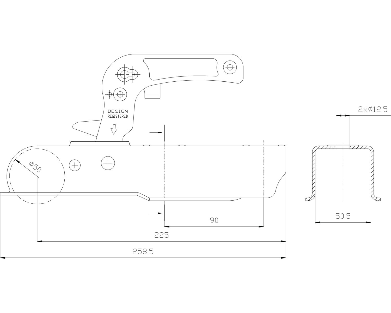 Tête d'attelage carré 50mm