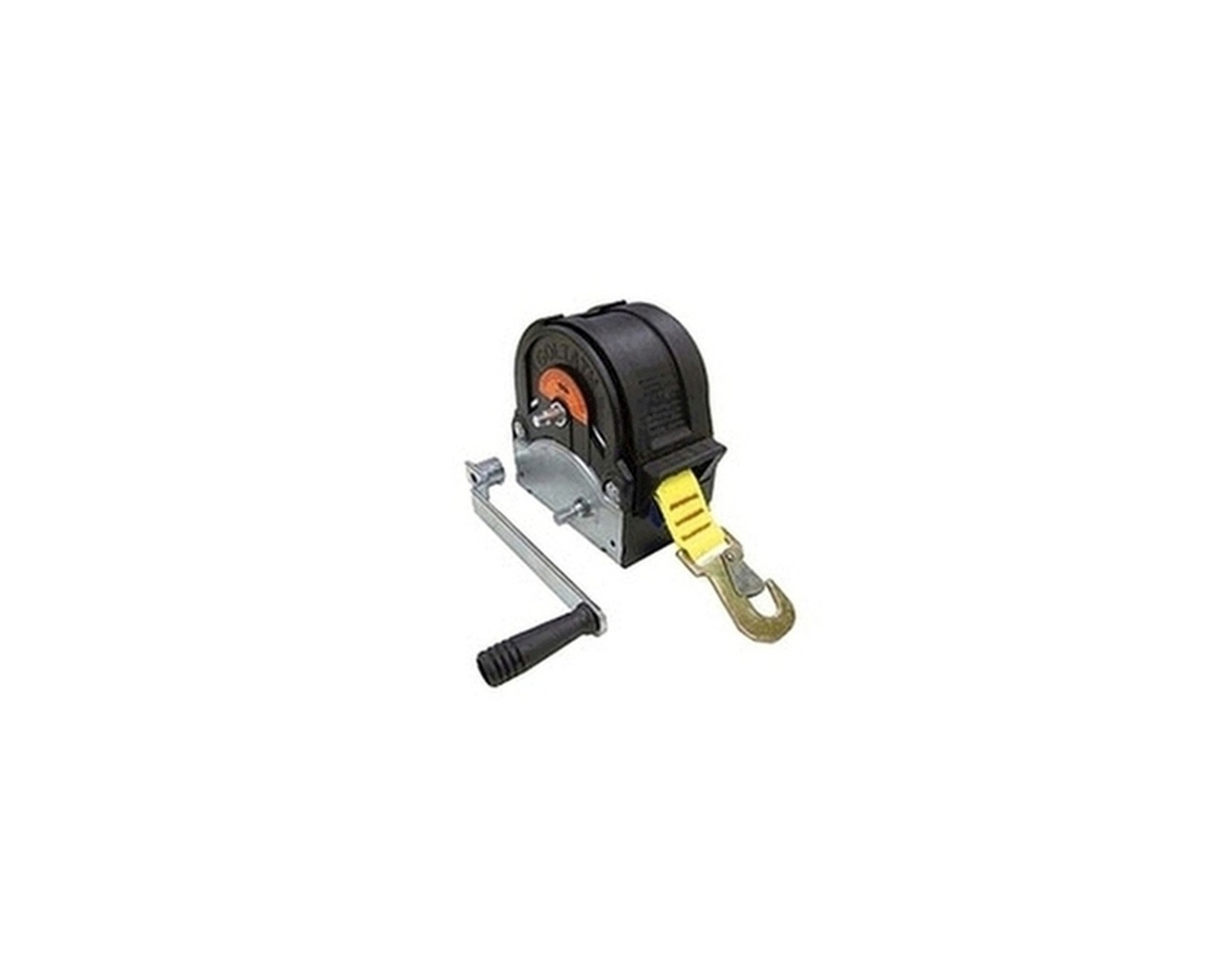 Le système de sécurité peut être débrayé pour faciliter le déroulement libre de la sangle hors charge. Le treuil Goliath@ série TS est fourni complet avec sangle et crochet.