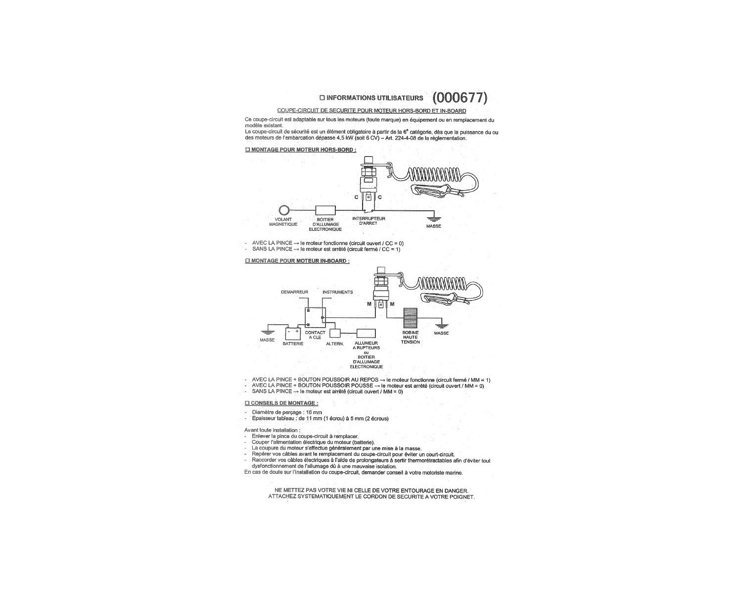Le moteur hors-bord ou in-bord se coupe dés que la pince du coupe circuit est enlevée. Adaptable ou en remplacement sur les moteurs prééquipés de coupe circuit.