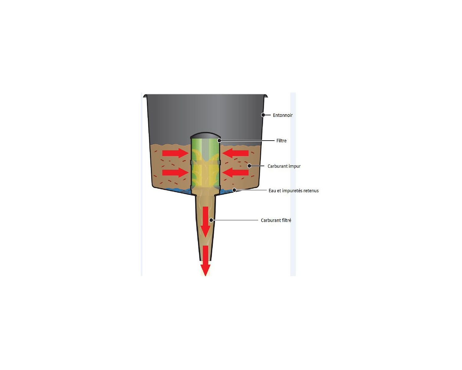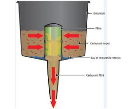 Entonnoir avec filtre intégré, permet de filtrer l'eau et les saletés !