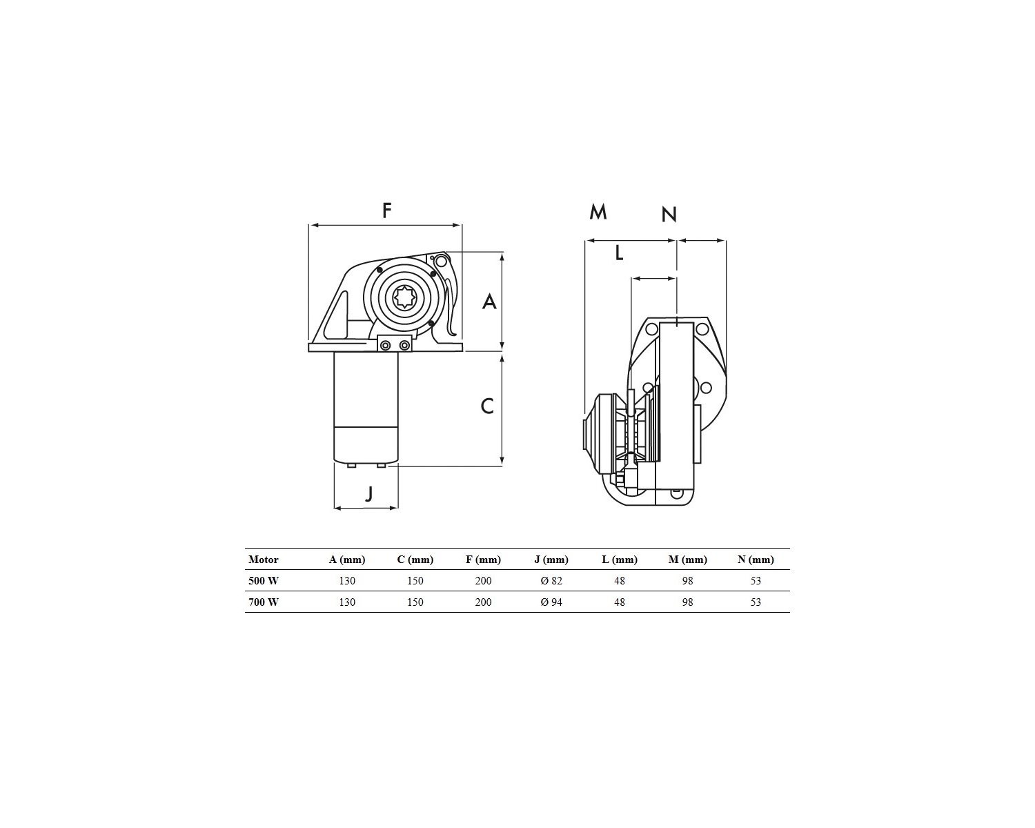 Guindeau électrique Dorado 12V 700W à axe horizontale avec barbotin mixte chaîne Ø8mm et cordage Ø12mm. Pour bateaux de 6 à 10 m. Livré avec relais.