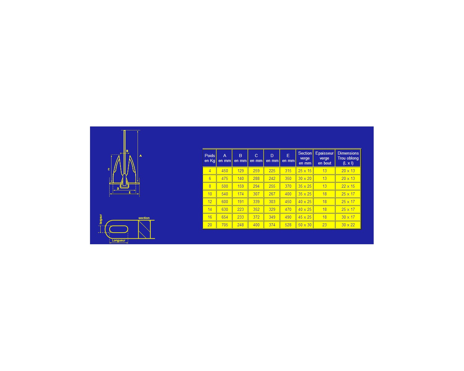 Ancre dédiée à la Plaisance, conçue pour tout type de navire (Voile, moteur, catamarans…).