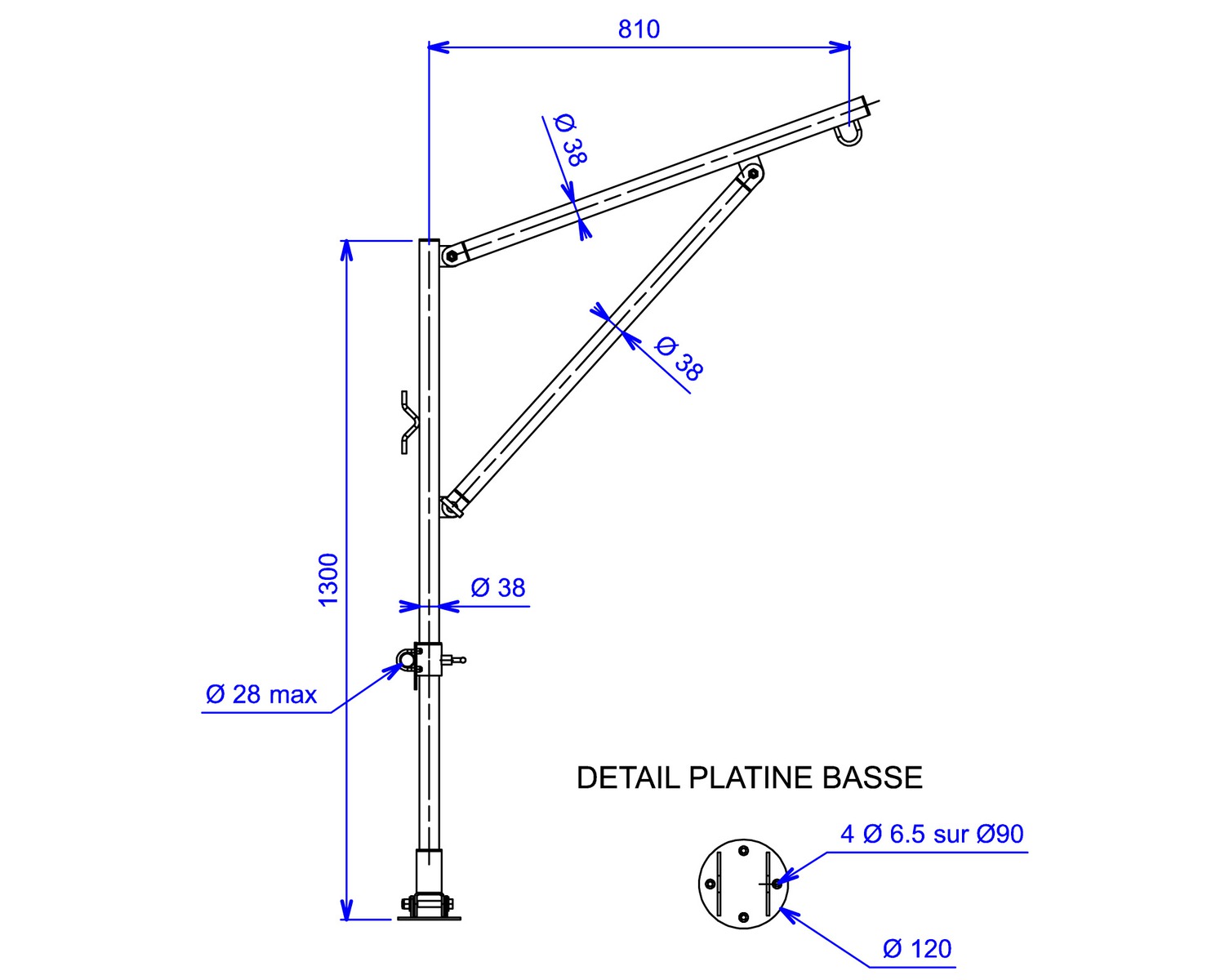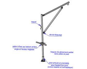 Mât de charge pivotant et repliable en INOX316 Poli.