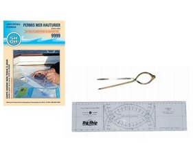 Kit pour préparer le permis hauturier comprenant une règle cras, uncompas à pointes sèches et une carte spéciale permis 9999.