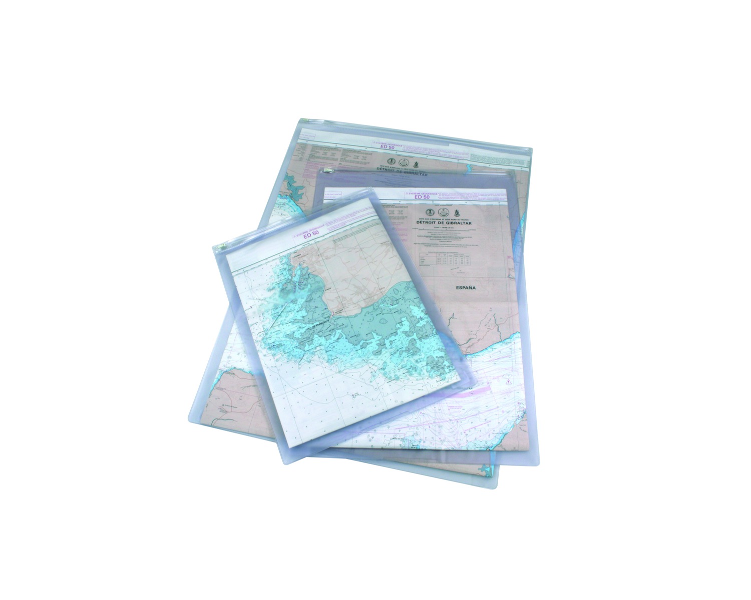 Pochette imperméable en PVC transparent satiné recto verso. Fermeture étanche aux embruns par zip. Idéal pour protéger vos cartes, règles de course, etc…