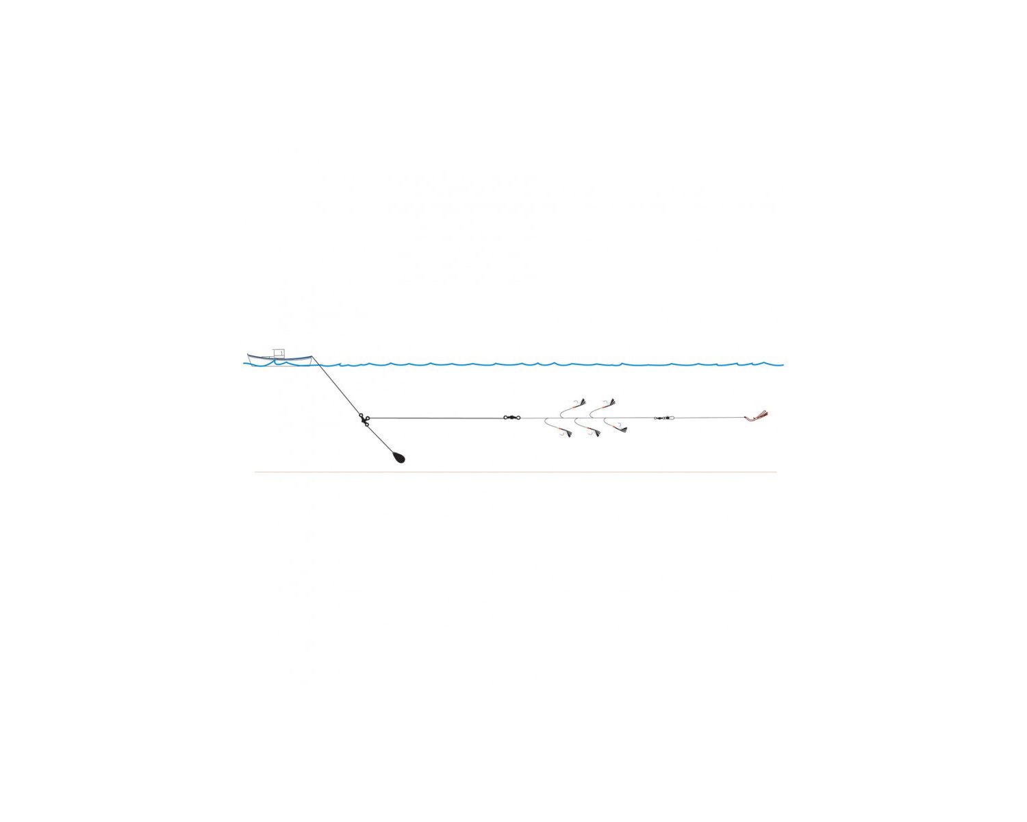 Raccorder le plomb à l'émerillon paternoster par un nylon (cassant) de 40/100 et 1m de long. Cette longeur est nécessaire pour faire travailler la ligne au-dessus du fond, sans accrocher. Un plomb de 300 à 500g est, en règle générale, suffisant pour une pêche à fond ou entre deux eaux.