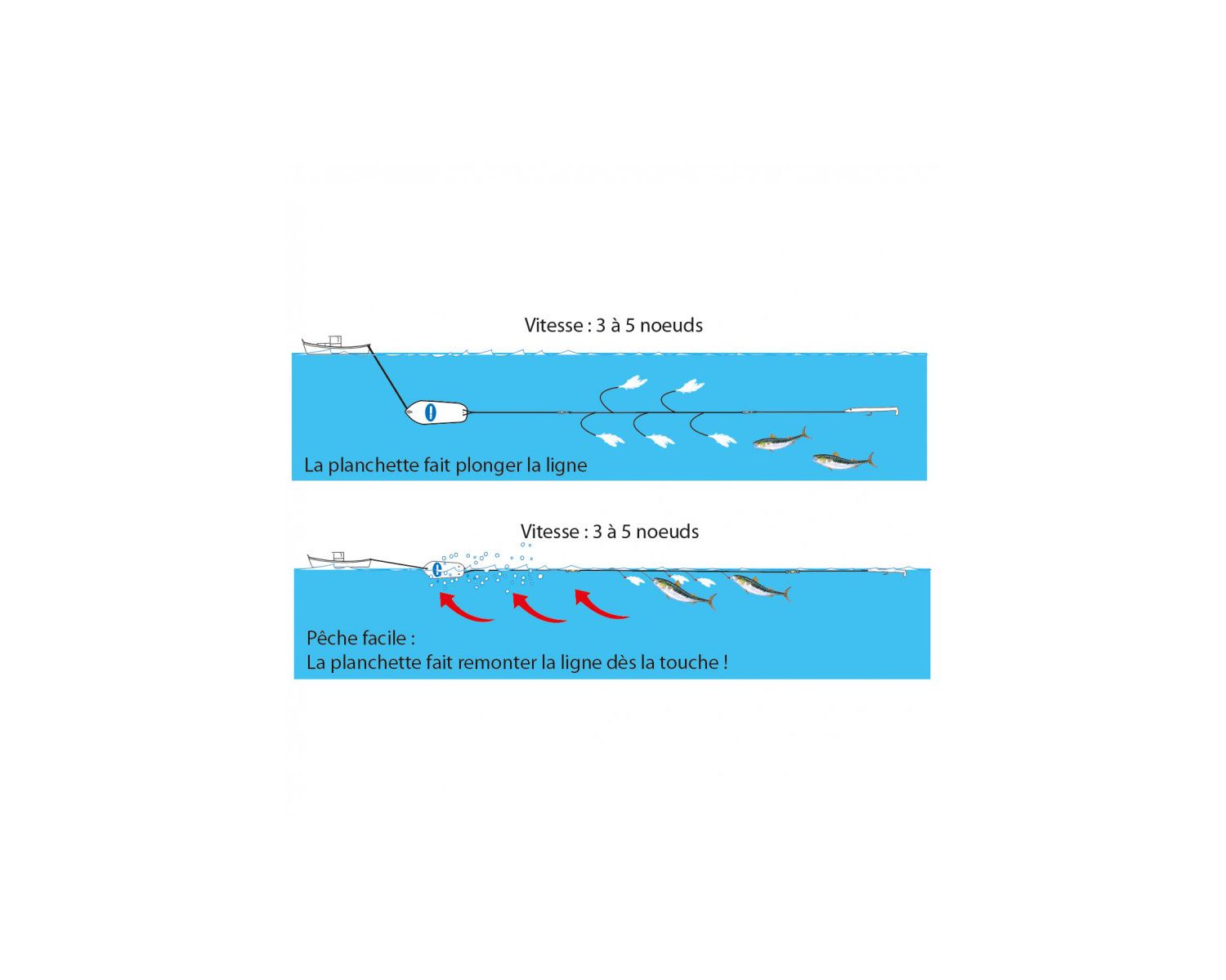 Toutes nos lignes avec planchettes, sont montées avec des planchettes qui assurent une nage et un équilibre parfait.